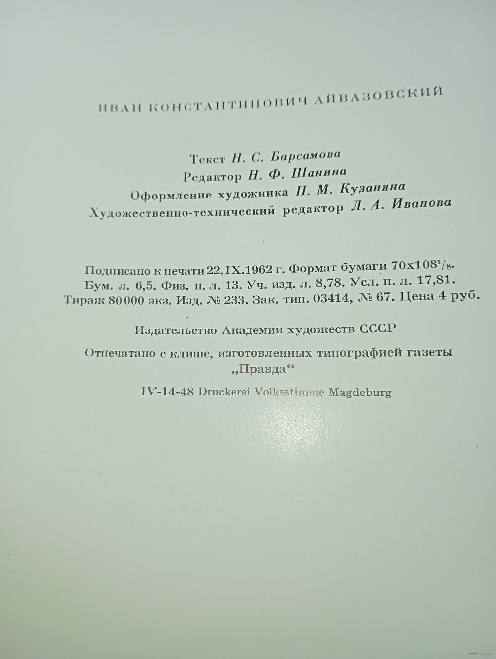 Книга по искусству . И . К . Айвазовский , Издательство Академии Художеств СССР. 1963 г.