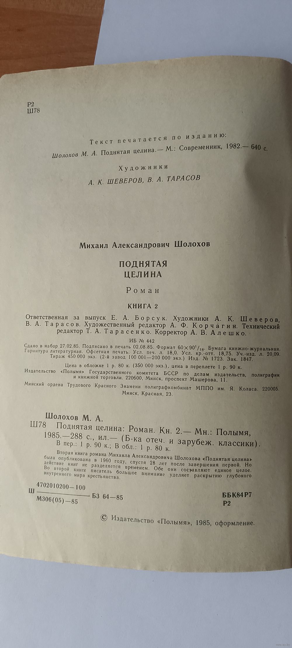 Роман Михаила Шолохова Поднятая целина. Лот состоит из двух книг. Минск "Полымя" 1985 год. 1 книга 255 стр и 2 ая книга 288 стр. Без МПЦ. Отдам по последней ставки.