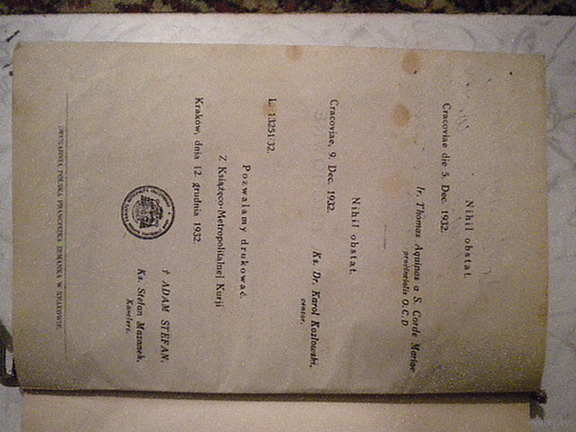 Краков 1933 год , разм. 20-14 см . 239 страниц . При намерении покупки покупателями из зарубежья , предварительно свяжитесь с продавцом . Назад не принимается .