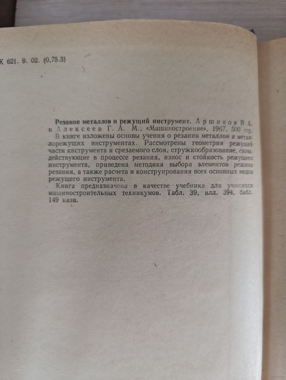 Книга. В. А. Аршинов, Г. А. Алексеев. " Резание Металлов и Режущий инструмент ". Книга в хорошем состоянии все страницы целые не порвоные.