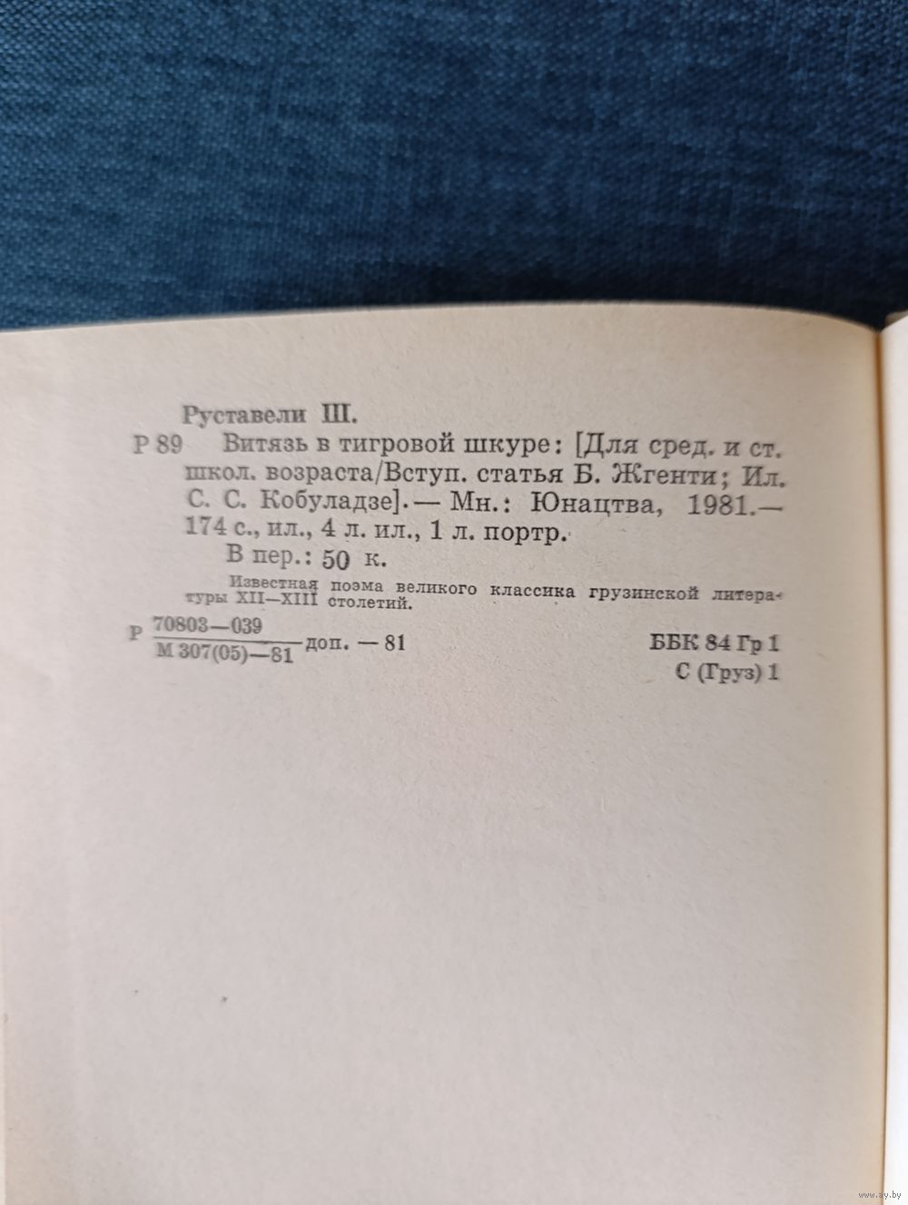 Шота Руставели. " Витязь в тигровой шкуре ". Книга в хорошем состоянии все страницы целые не порвоные.