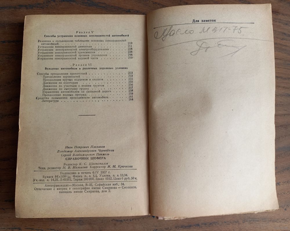 Книга "Справочник шофера", 1957 год, научно-техническое издательство автотранспортной литературы, Москва тираж 100 000. И.П. Плеханов, В.А.Черняйкин, С.В.Папмель.