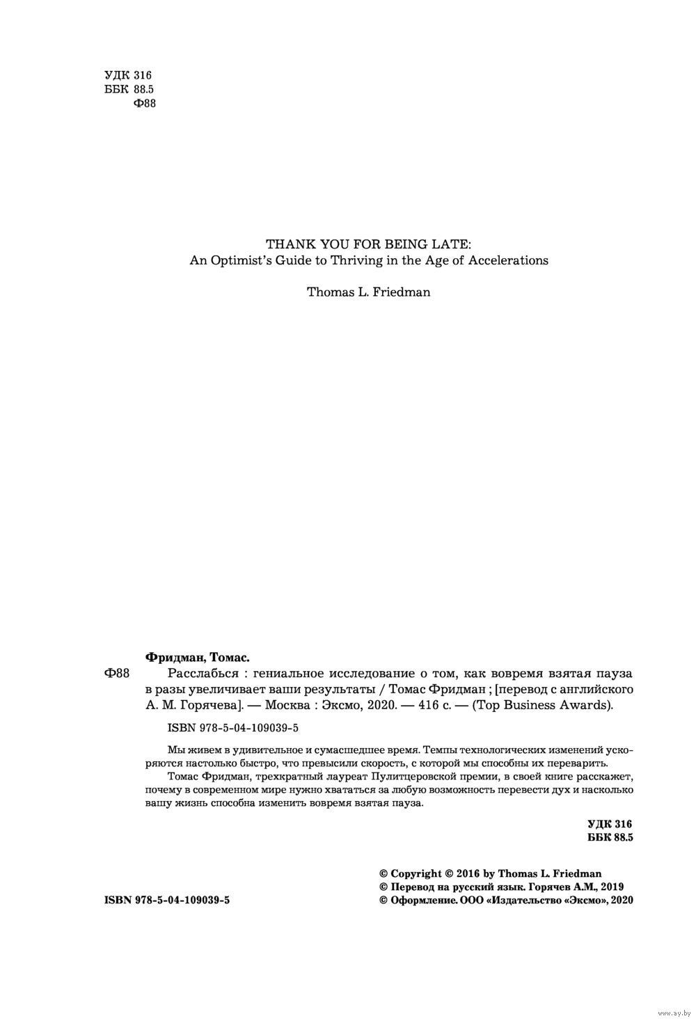 Мы живем в удивительное и сумасшедшее время. Темпы технологических изменений ускоряются настолько быстро, что превысили скорость, с которой мы способны их переварить. Томас Фридман, трехкратный лауреат Пулитцеровской премии, в своей книге расскажет, почему в современном мире нужно хвататься за любую возможность перевести дух и насколько вашу жизнь способна изменить вовремя взятая пауза.