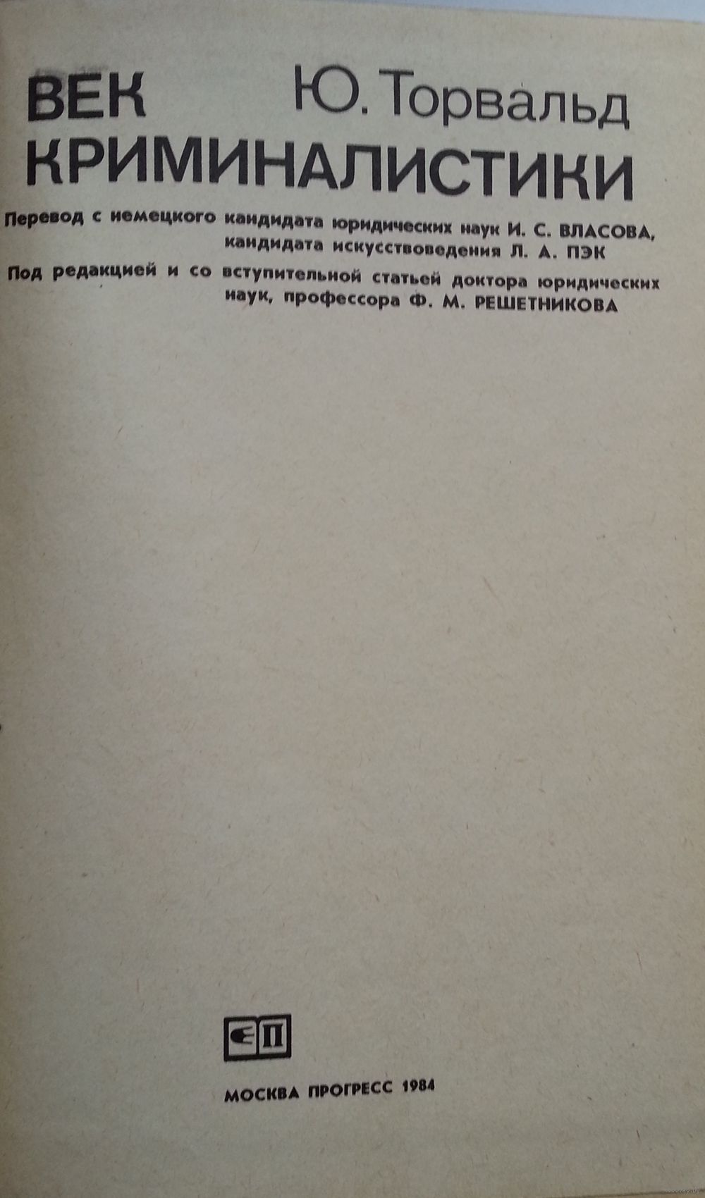 «Век криминалистики» — мировой бестселлер немецкого писателя Юргена Торвальда. Это научный детектив, или детективная история одной науки. Основанный на достоверных фактах увлекательный рассказ о драматической истории возникновения и развития криминалистики иллюстрируется примерами расследований конкретных уголовных дел. Описание событий постоянно переносится из одной страны в другую, а часто и с континента на континент (из Франции в Англию, оттуда в Индию или в США, затем снова в Европу). Герои книги — не только преступники и сыщики, но и ученые, психиатры, писатели. Торвальд демонстрирует связь криминалистики как с естественными науками, так и с литературой, описывая удивительные судьбы людей, причастных и к уголовному розыску, и к писательскому труду, и показывая, что развитие сыска во многом обусловлено деятельностью писателей, которые, подобно Чарлзу Диккенсу, Уилки Коллинзу, Конан Дойлу или Эмилю Паборио, избрали темой своих произведений работу детективов.