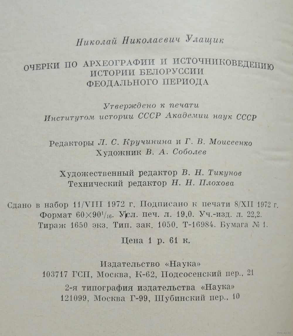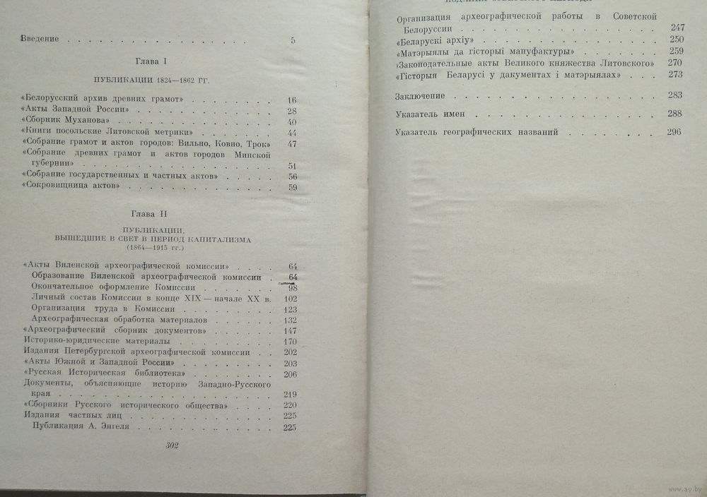 В монографии дан обзор публикаций, преимущественно актового характера, по истории Белоруссии, отчасти Литвы и Украины, помещенных в археографических сборниках с 1824 по 1940 гг.