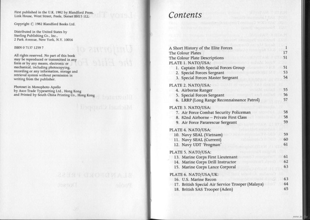 В книге кратко описана история элитных подразделений и описаны образцы формы одежды специальных подразделений разных стран мира: НАТО, стран Варшавского договора и др.