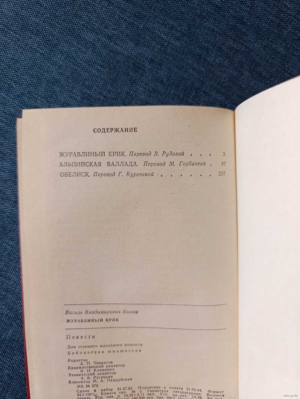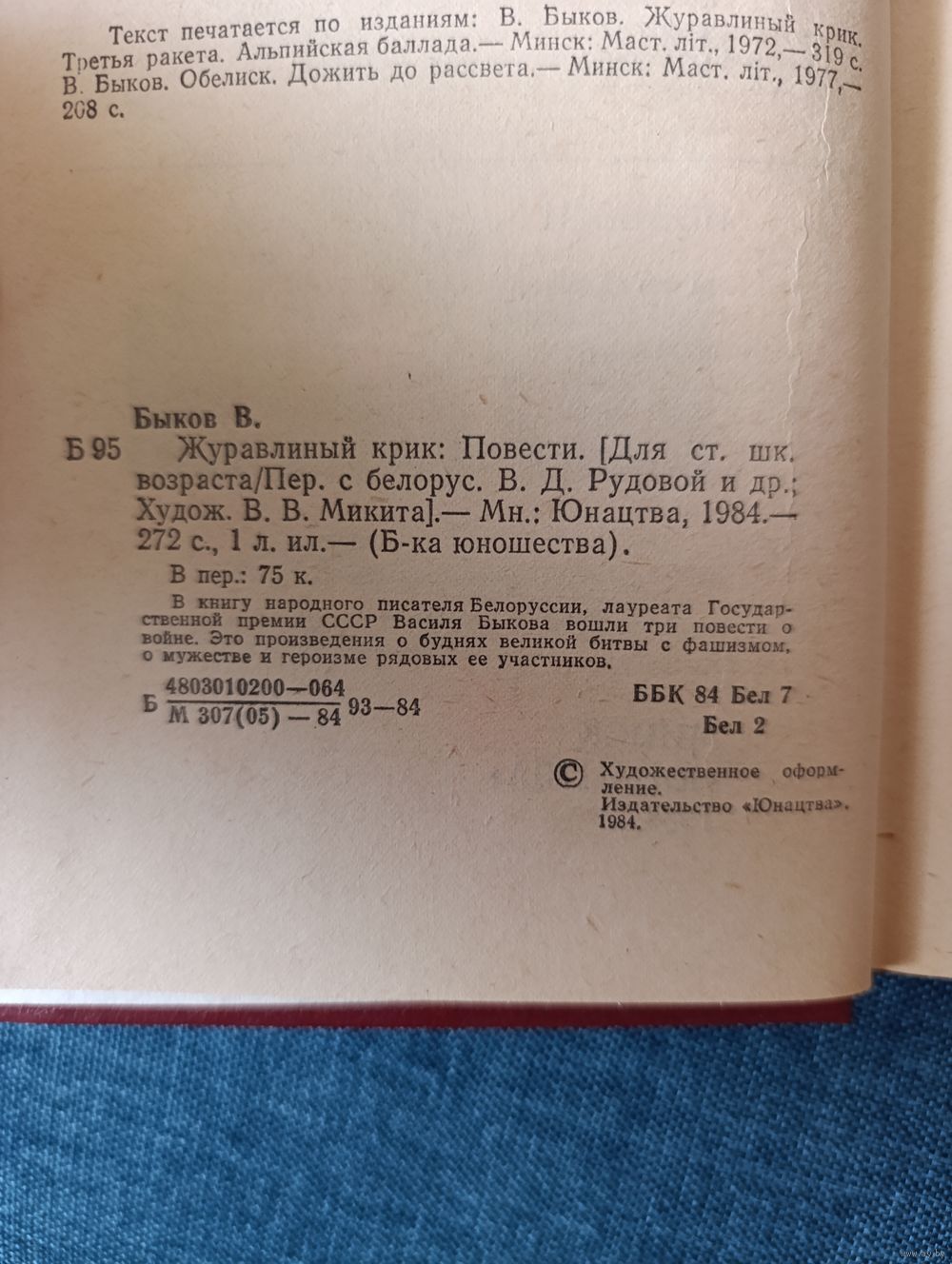 Книга. Василь Быков. " Журавлиный крик ". Книга в хорошем состоянии все страницы целые не порвоные.