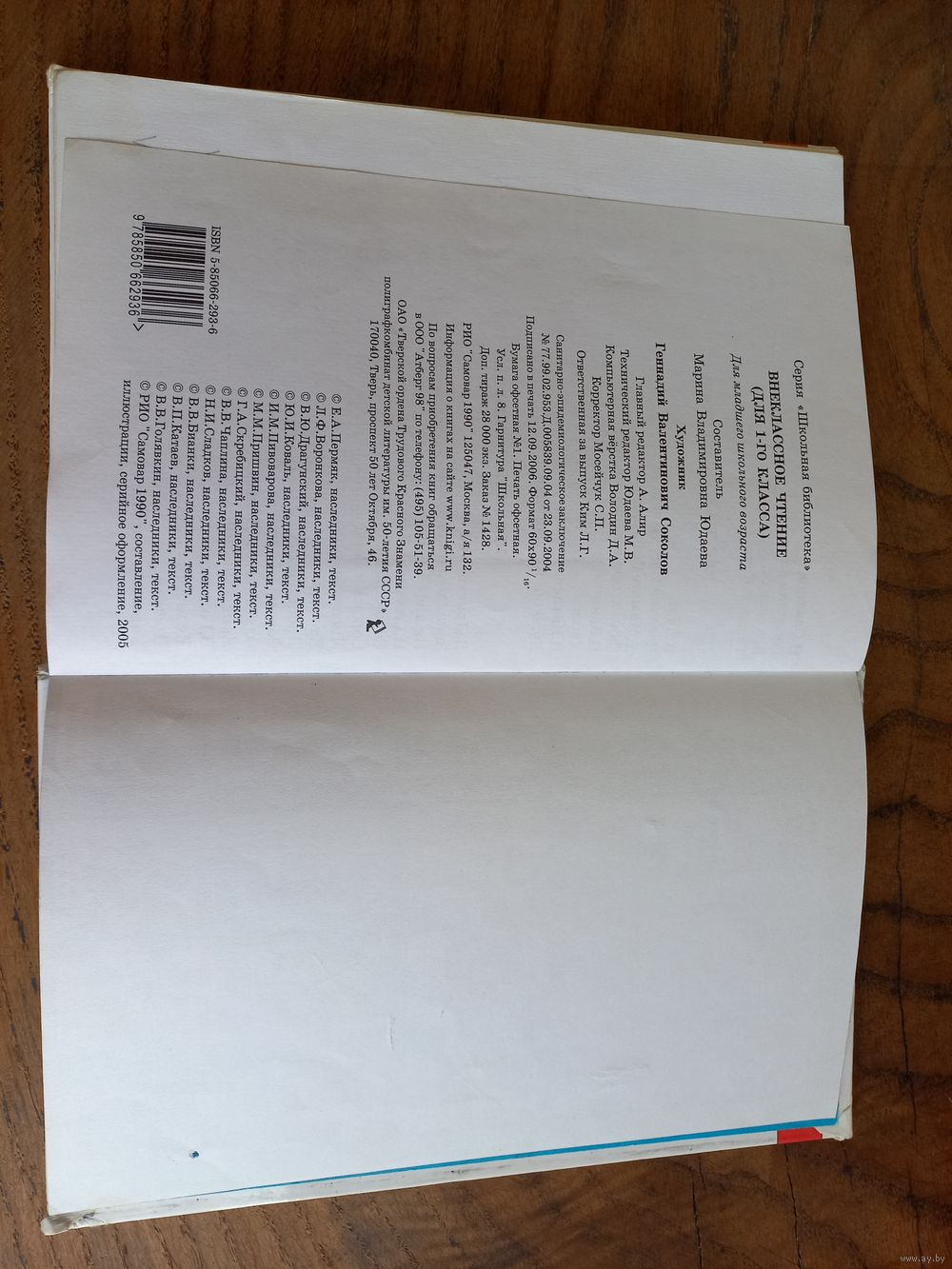 Книга "Внеклассное чтение", 1 класс, 2006 год, для младшего школьного возраста. Серия "Школьная библиотека".