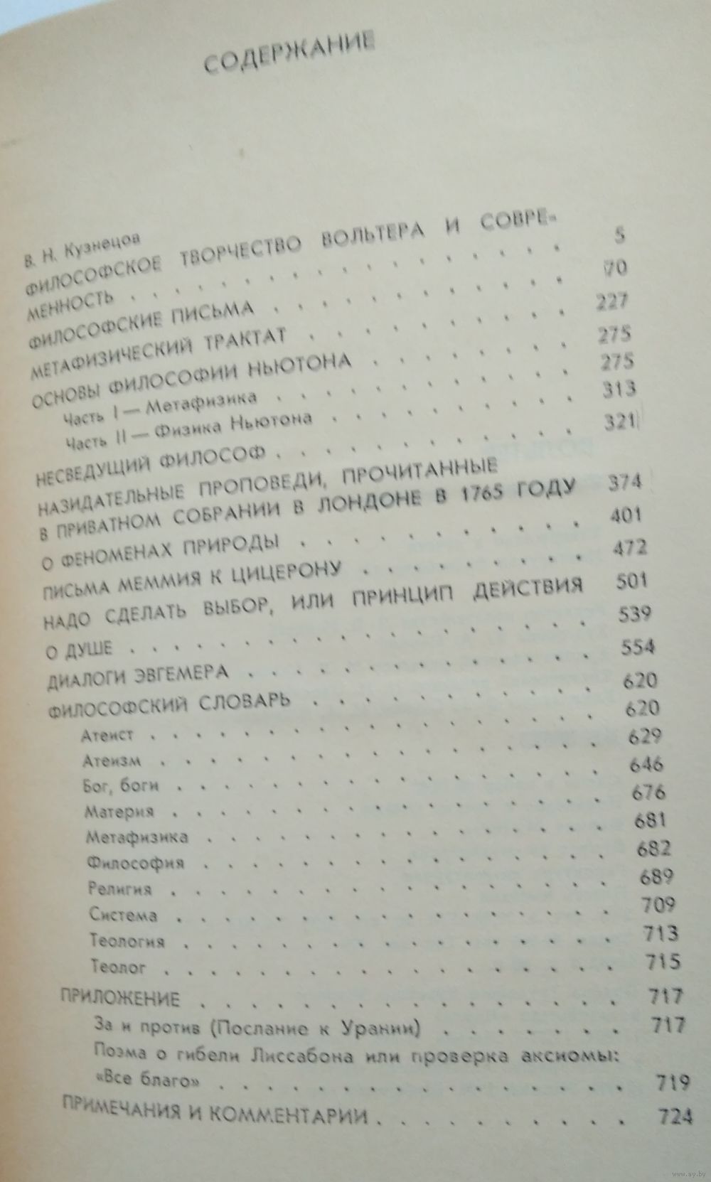 Составитель и автор вступительной статьи доктор философских наук В.Н.Кузнецов. Перевод с французского С.Я. Шейнман-Топштейн. В книге впервые публикуются на русском языке важнейшие философские сочинения (трактаты, диалоги, письма) и новые переводы нескольких статей из Философского словаря крупнейшего представителя французского Просвещения 18 века Вольтера. Эти работы дают достаточно полное представление о комплексе его философских воззрений. Для широкого круга читателей, интересующихся историей философской мысли.