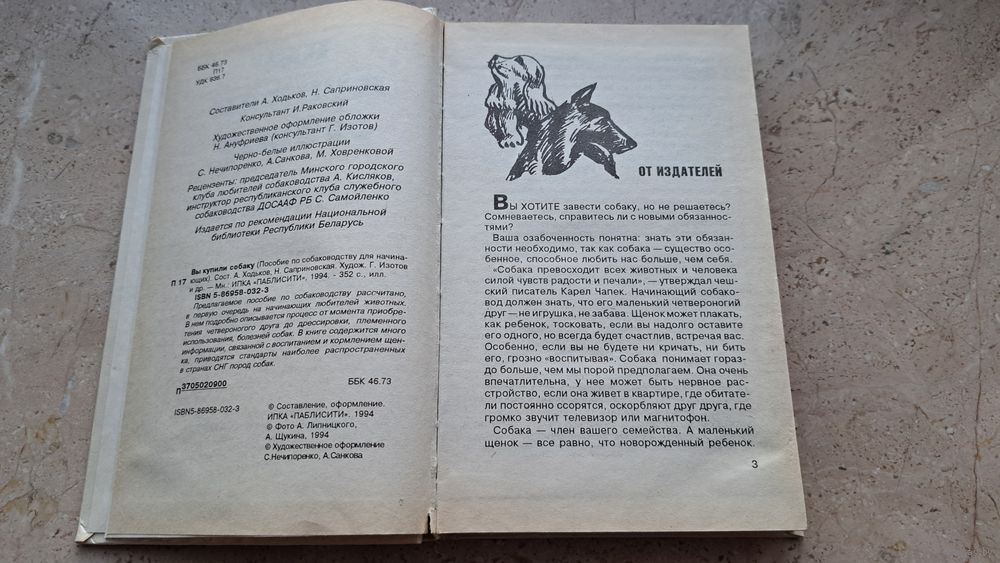 Книга "Вы купили собаку" составители А. Ходьков и др. издательство Паблисити - Реликт - Аверсэв Минск 1995 - 350 стр. Пособие по собаководству для начинающих.