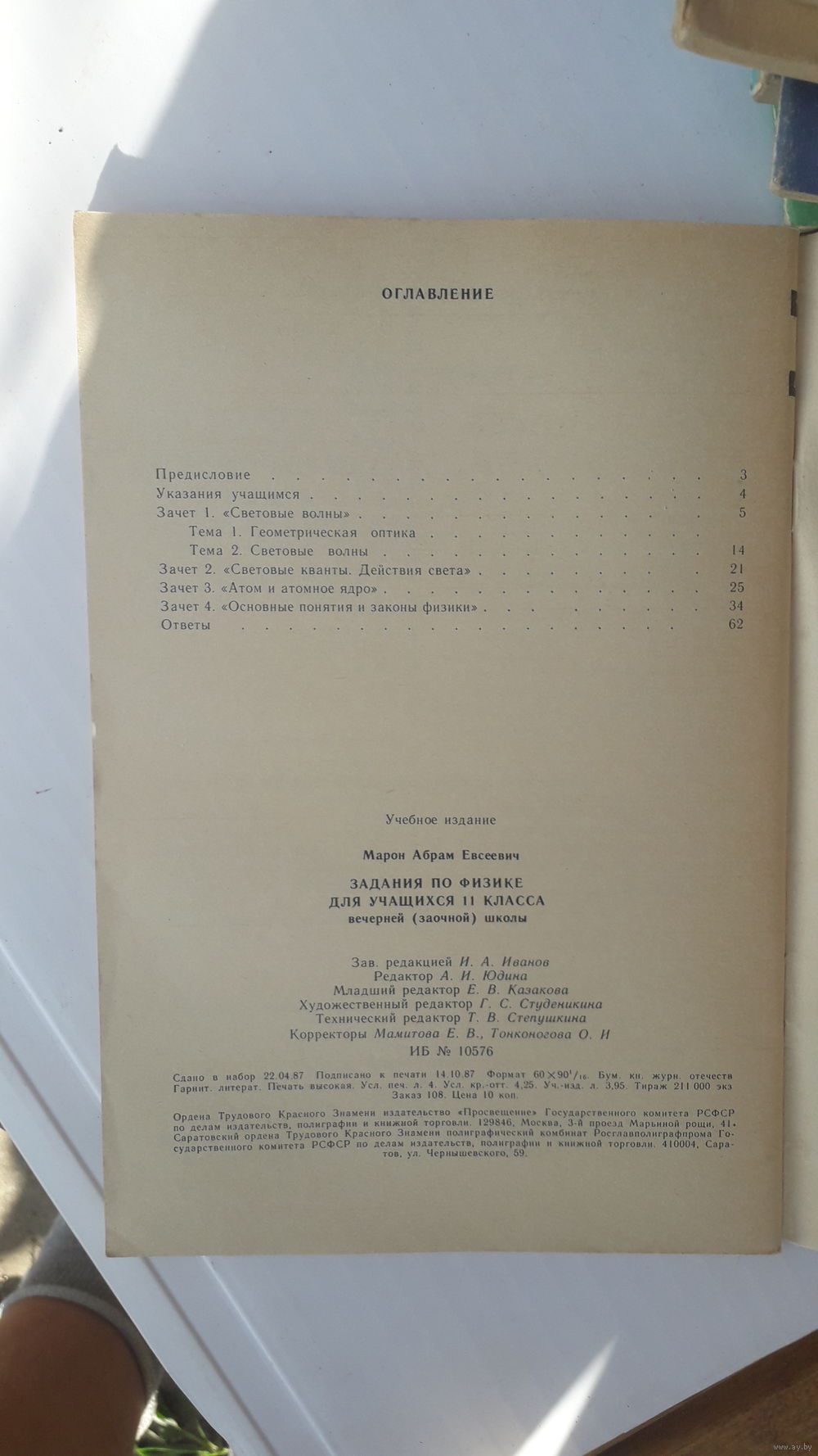 Книга Задания по физике для учащихся вечерней школы.11кл.1988г.