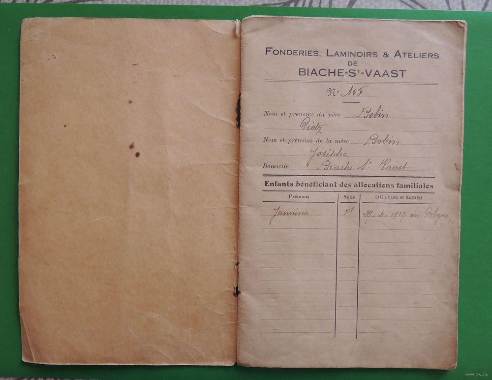 Книжка семейных пособий, Франция, 1931-1932 гг.
