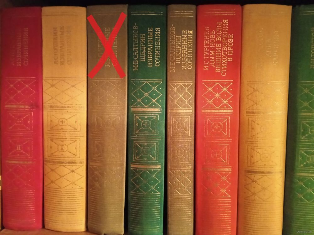 В наличии имеется 38 изданий (книги) со следующими авторами: Горький, Маяковский, Гоголь, Лесков, Бунин, Есенин, Лермонтов, Пушкин, Тургенев, Салтыков-Щедрин, Жуковский, Чернышевский, Толстой, Некрасов, Шолохов, Шевченко, Диккенс, Золя, Голсуорси, Бальзак, Теккерей, Гюго.