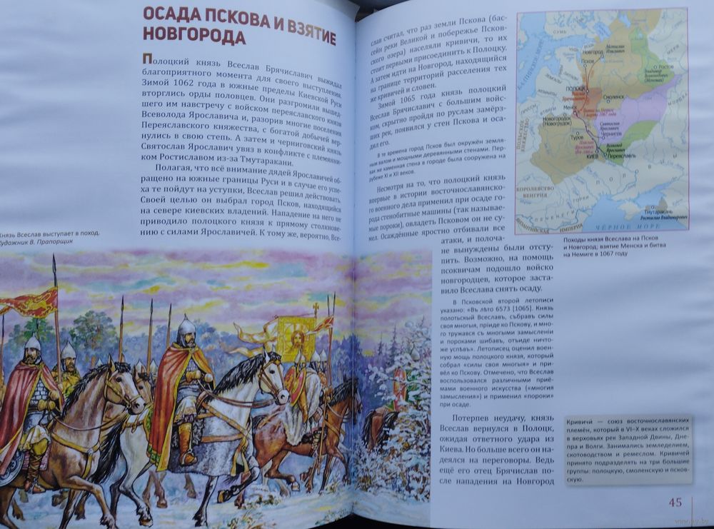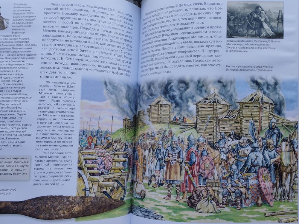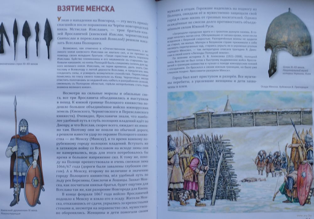 Подарочное издание. Большой энциклопедический формат. Мелованный альбом. Тираж 1000 экз. 128 стр. Герой увлекательной, насыщенной историческими фактами и событиями книги – знаменитый полоцкий князь Всеслав Брячиславич, прозванный Чародеем. Он был потомком великого князя Владимира и полоцкой княжны Рогнеды. В книге описывается жизнь и неутомимая деятельность этого незаурядного правителя на фоне воинственной эпохи, полной смуты и борьбы за владение землями. Летописец в "Повести временных лет" сообщает, что мать родила Всеслава "от волъхвования", а также, что ему были присущи необычные способности. Поэтому в летописях и легендах его называют волхвом, чародеем. Судьба князя Всеслава Чародея была необычной: он строил города и храмы, защищал свои земли и подвергался изгнанию, одерживал победы и терпел поражения, пребывал в заточении и восходил на киевский престол – единственный из полоцкой ветви династии Рюриковичей. Возведённый во время его правления Софийский собор в Полоцке стал жемчужиной белорусского зодчества и был средоточием духовной культуры Полоцкой земли на протяжении XI-XII веков. Князь Всеслав Чародей всю жизнь посвятил своей главной цели и исторической миссии – сохранить политическую независимость и целостность Полоцкого княжества (куда входил и Минск), заложив тем самым политический, духовный и культурный фундамент будущей белорусской государственности. Издание прекрасно иллюстрировано, содержит фрагменты карт и страниц летописей, репродукции картин, редких гравюр и литографий.