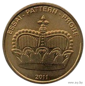 КНЯЖЕСТВО ЛИХТЕНШТЕЙН. 20 ЕВРОЦЕНТОВ 2011. ПРОБА. КНЯЖЕСКАЯ КОРОНА.