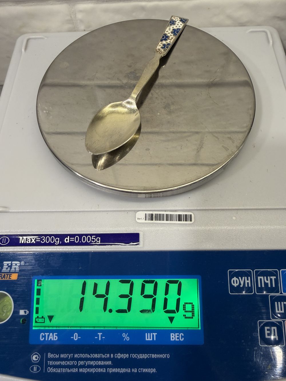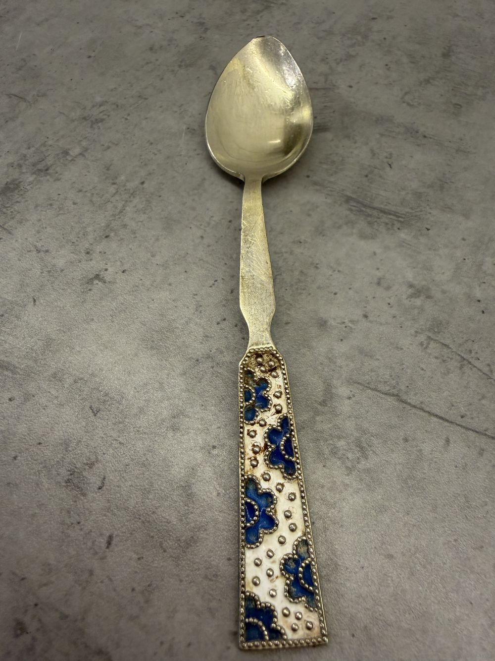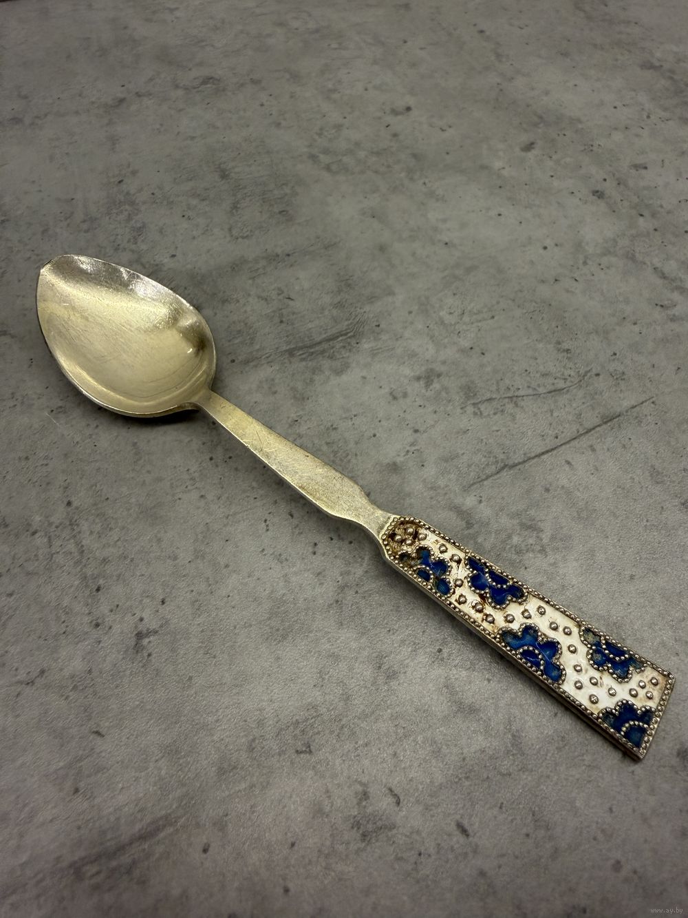 Кофейная ложка серебро с позолотой 875 пр. СССР. Два цвета эмали.(1) Распродажа коллекции!!!
