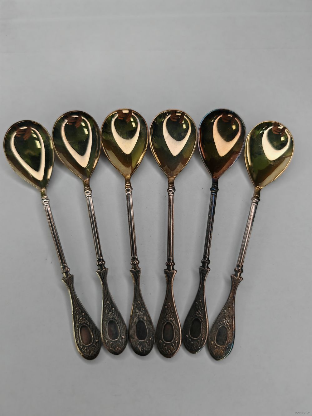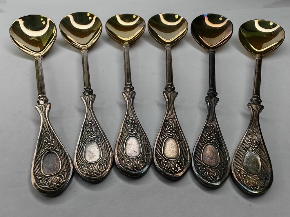 Кофейная ложка СССР. Мельхиор с позолотой. 6 шт.