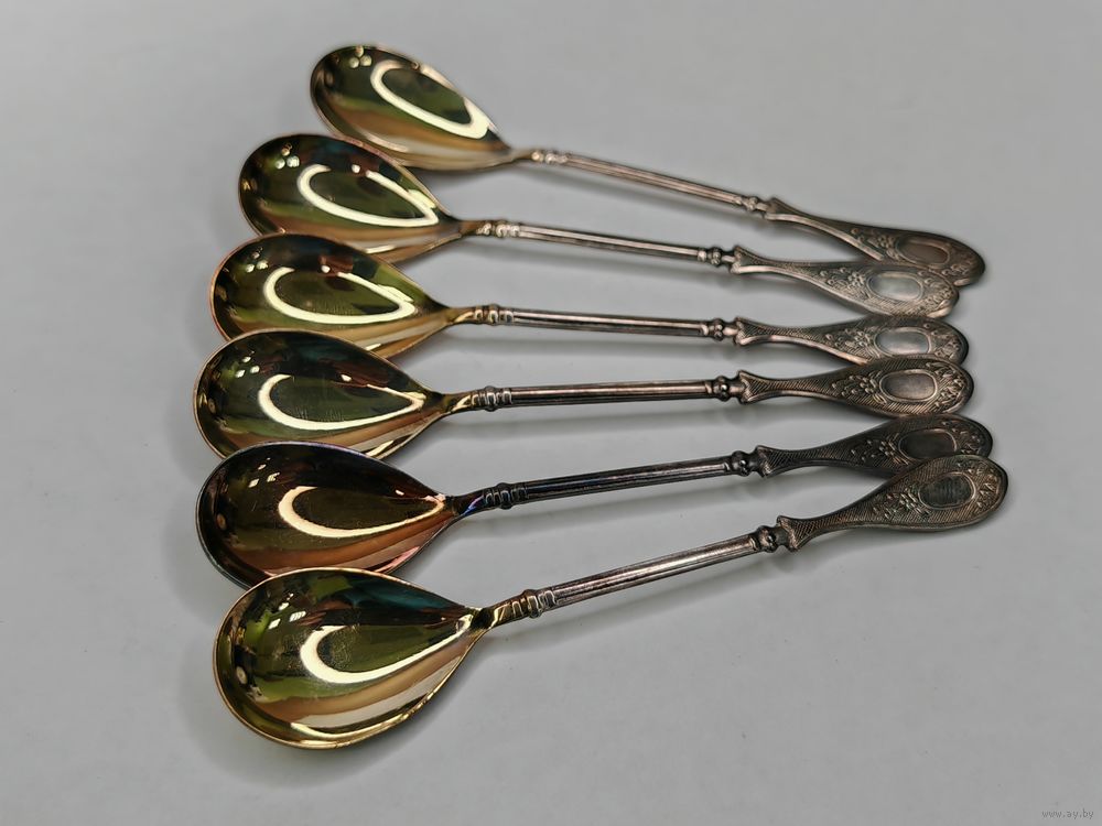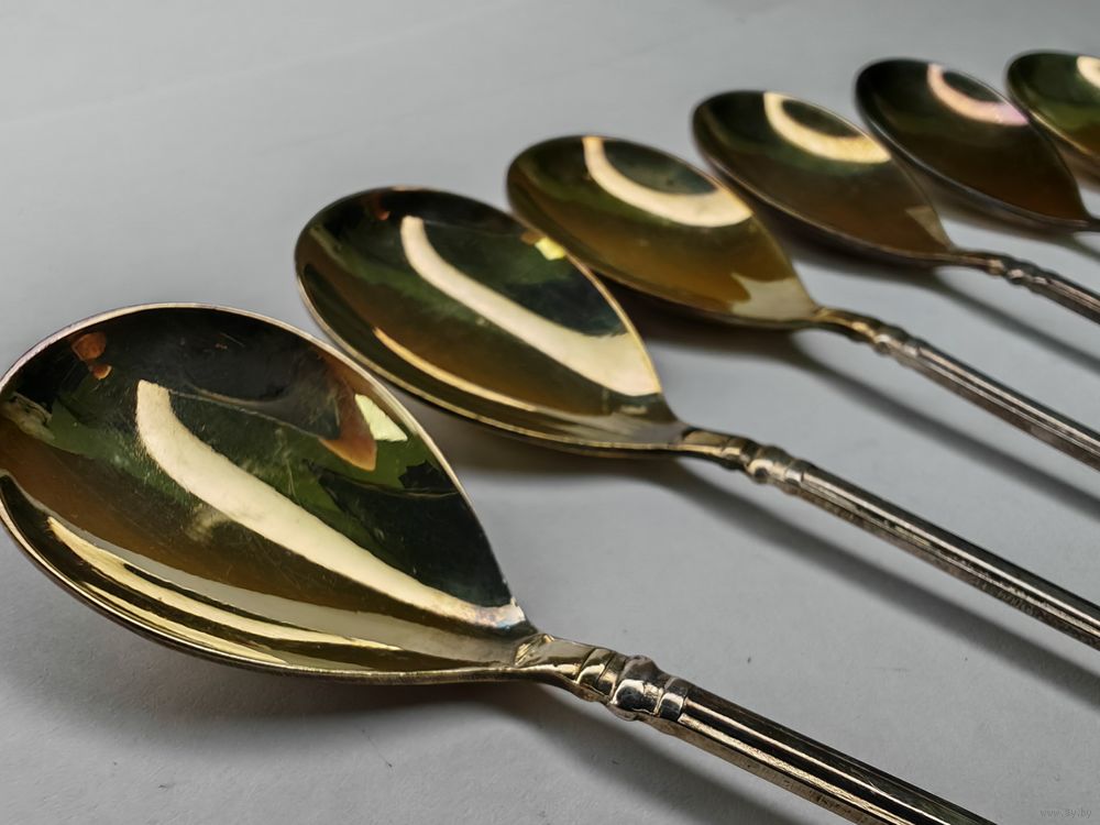 Кофейная ложка СССР. Мельхиор с позолотой. 6 шт.