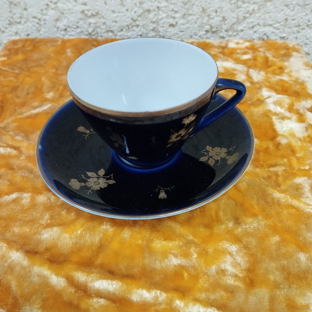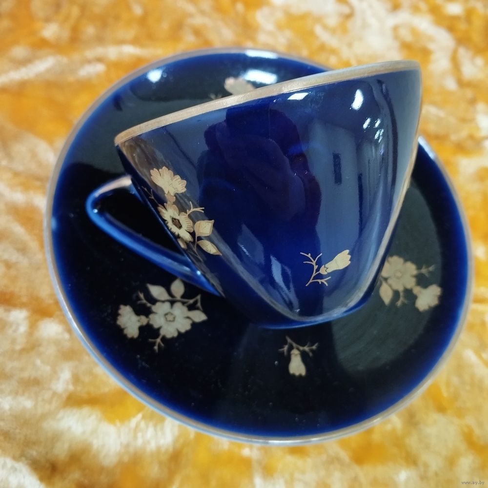 Кофейная пара (чашка 150 мл с блюдцем) золотой Анемон, кобальт. ЛФЗ