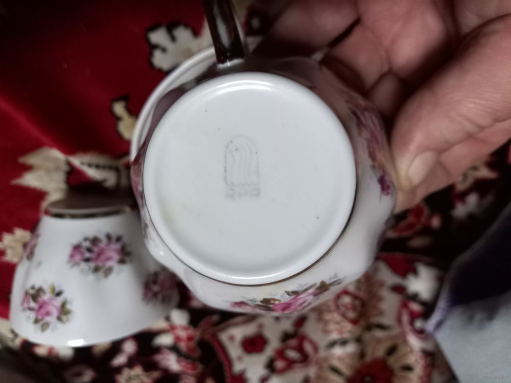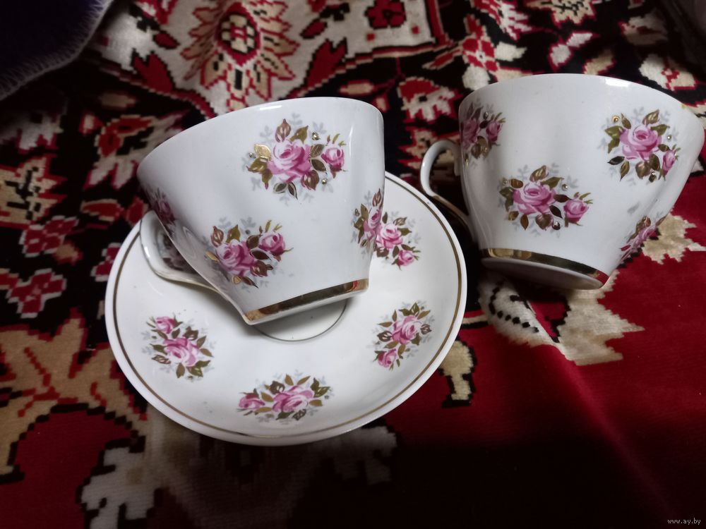 Кофейная пара+чашка.Костяной тонкий фарфор ручная роспись Рига СССР