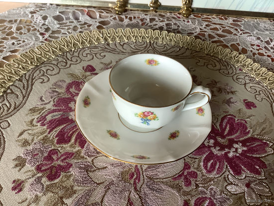 Красивая винтажная кофейная Пара , Блюдце 11 см, чашка диаметр 6 см , белый фарфор