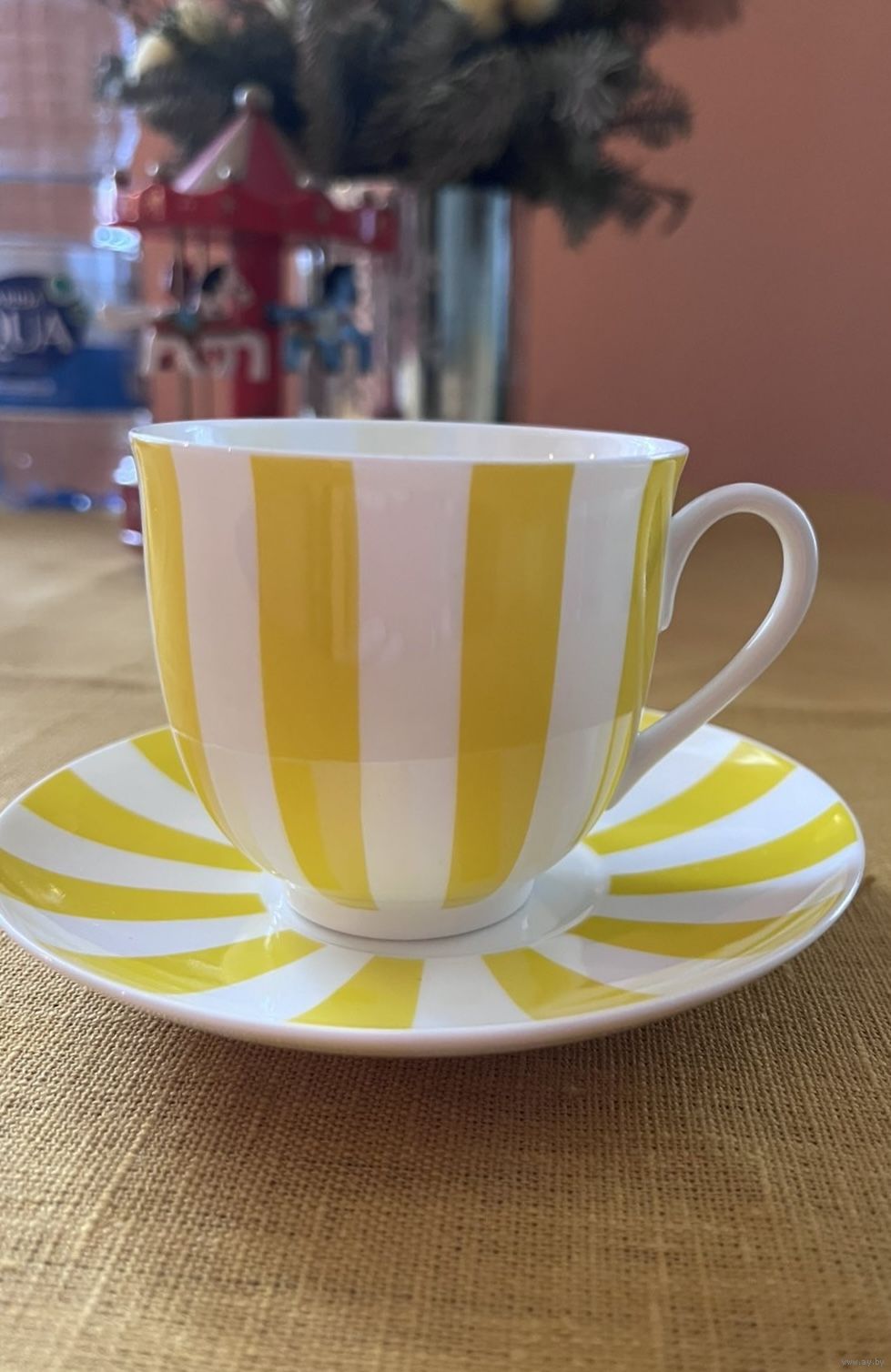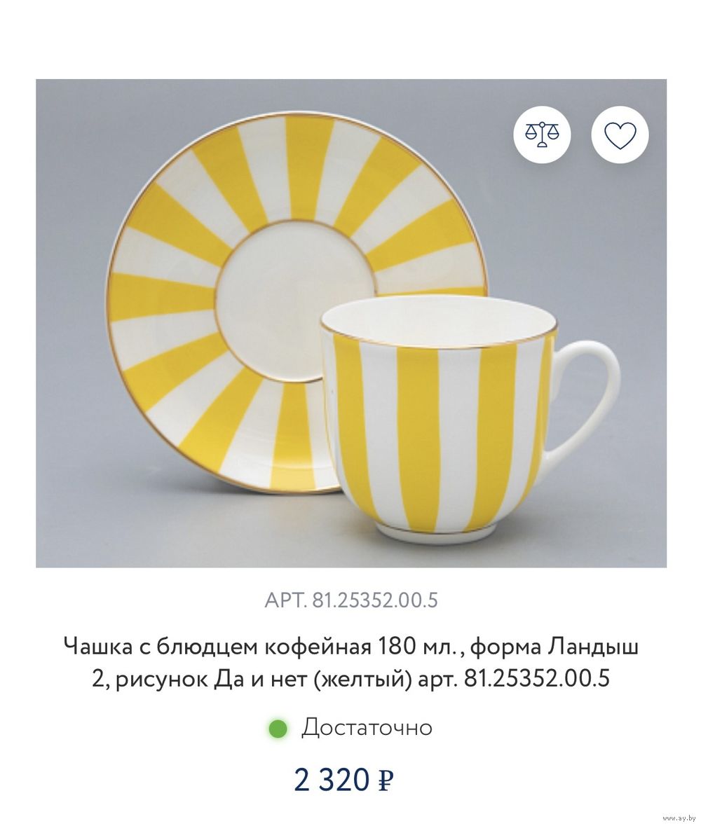 Изделие впервые поступило в продажу в 2002 году. Роспись серии чашек «Да и нет» гениально проста: ритмичное чередование белых и цветных полос. Белый цвет - это цвет самого материала. Дополнительный тон выбран художником не случайно: он должен составлять с фарфоровым фоном гармоничный контраст и динамику.