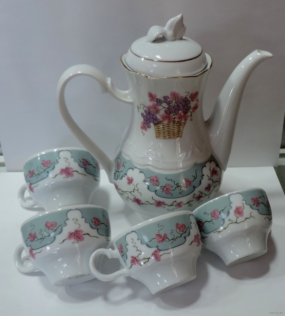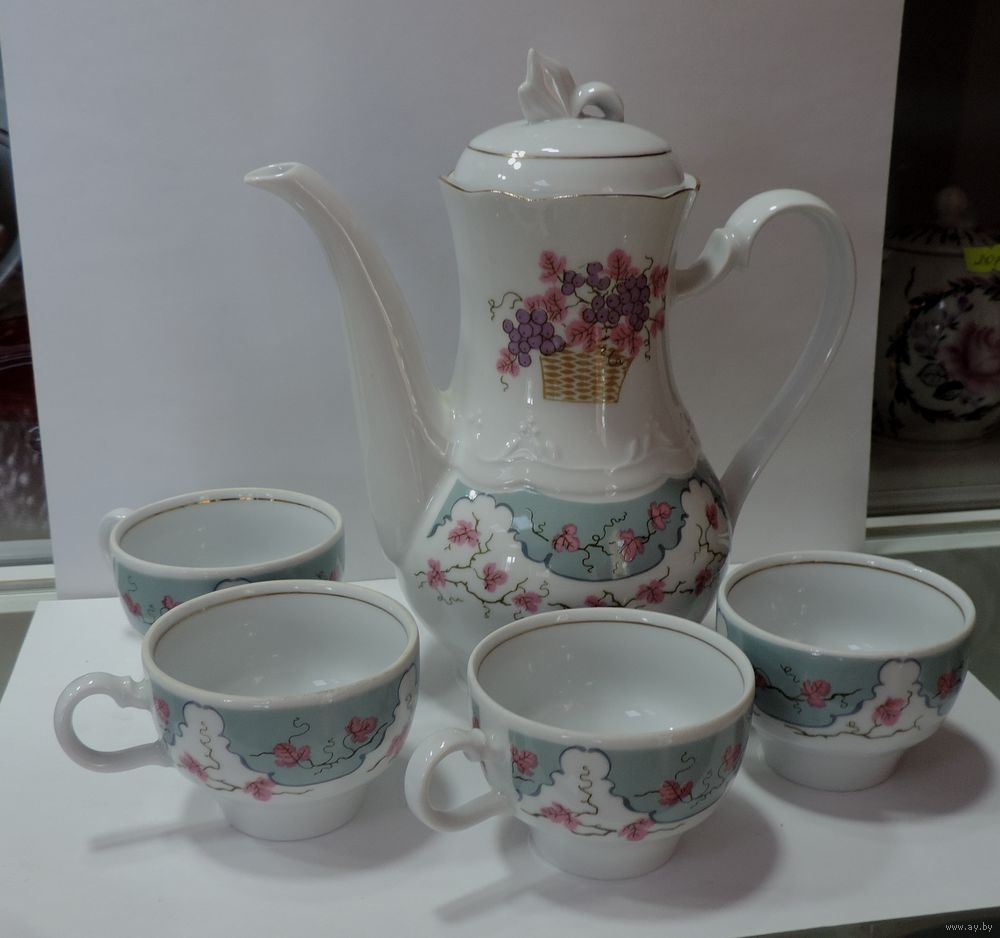 Кофейник и 4 чашечки. 70-е годы ГДР. (Чашки малые). Высота 18 см.