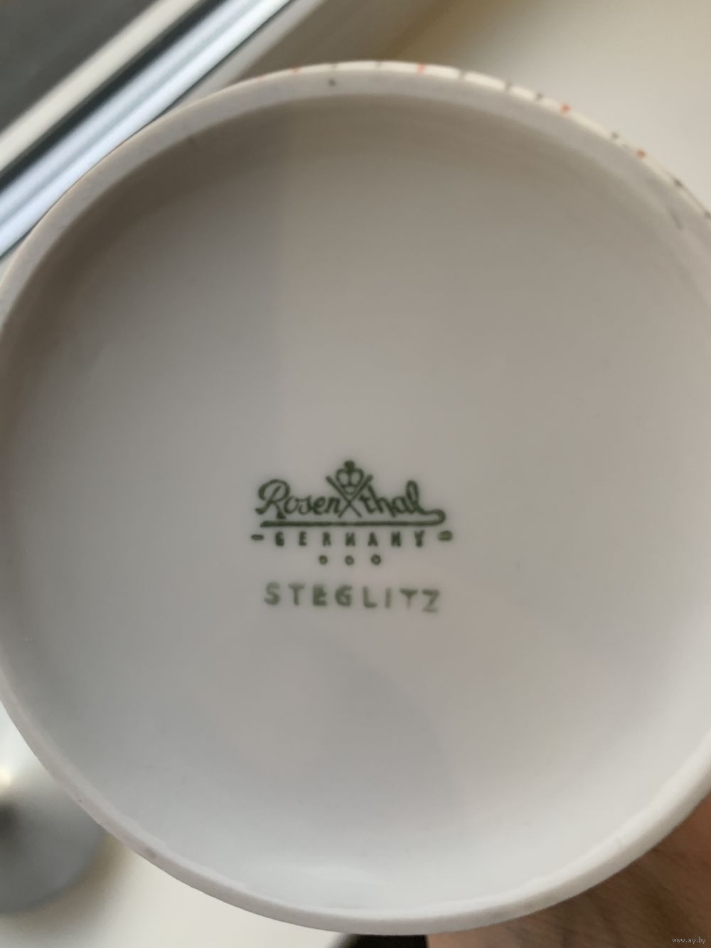 кофейник маркирован клеймом Rosenthal "Steglitz, Germany" - использовалось фабрикой Rosenthal примерно с конца 1950-х до 1960-х годов, иногда немного позже. Район Steglitz — это западный Берлин, где Rosenthal в отдельные периоды имела производства.