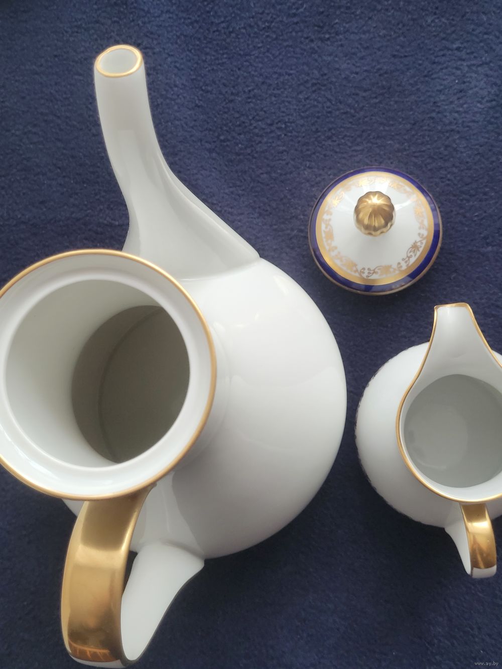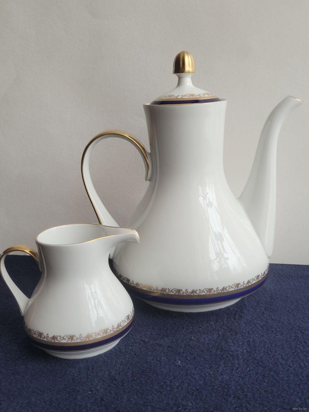 Серия Echt Weimar Kobalt. Высота кофейника с крышкой 24см, сливочник- 10см.