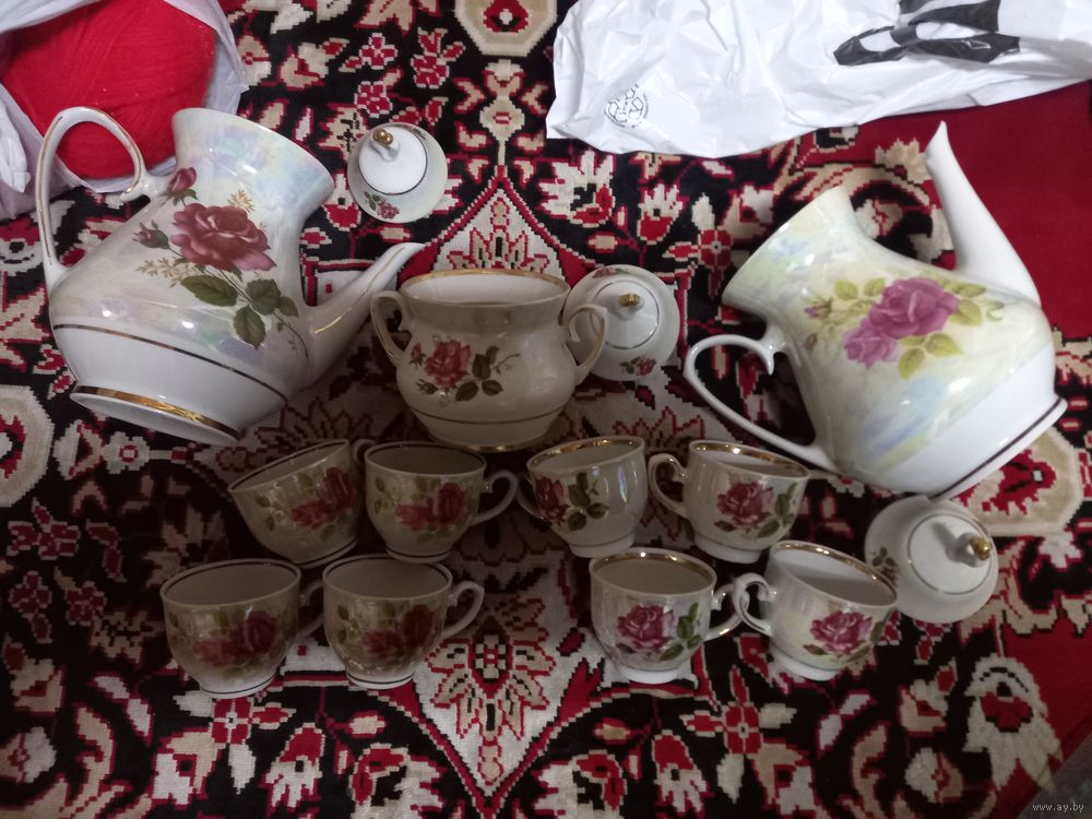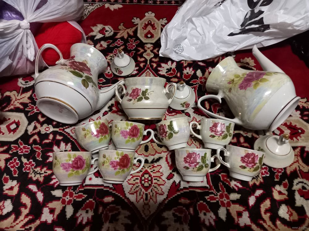 Кофейно-чайный сервиз Розы фарфор МФЗ Минск СССР разумный торг
