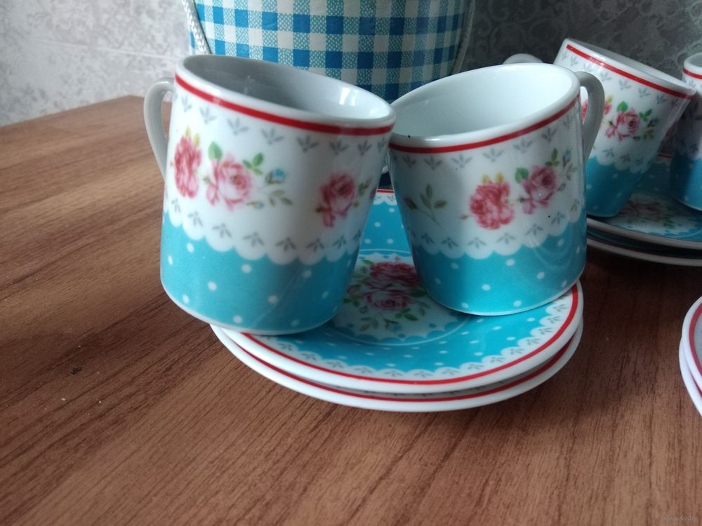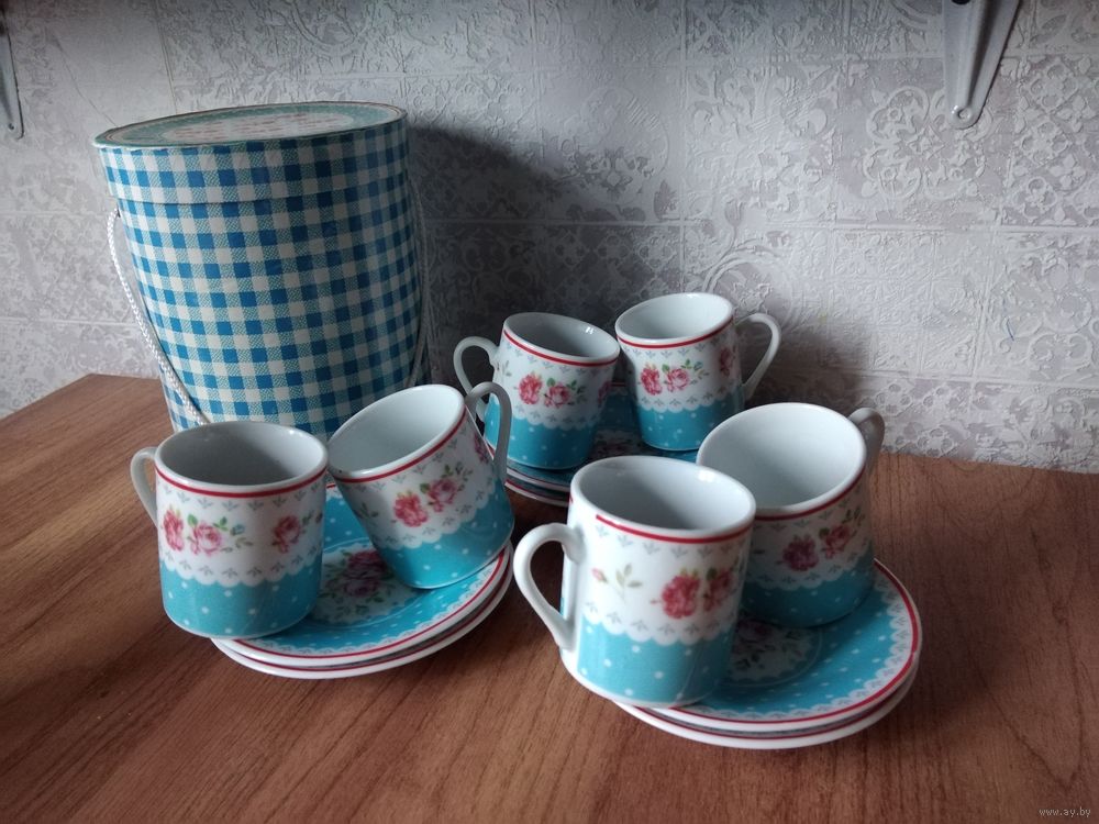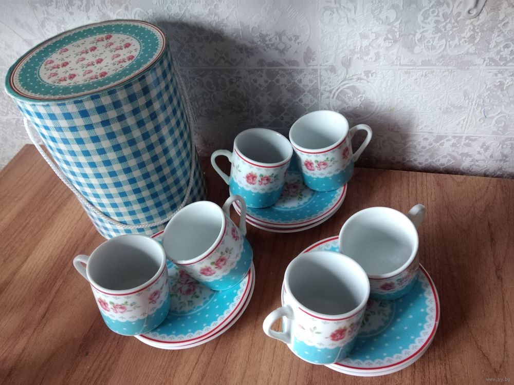 Красивый, изящный фарфоровый кофейный набор, в подарочной коробке. Новый. Чашечка на 60мл.