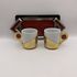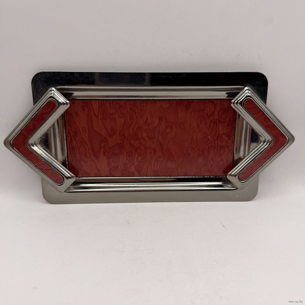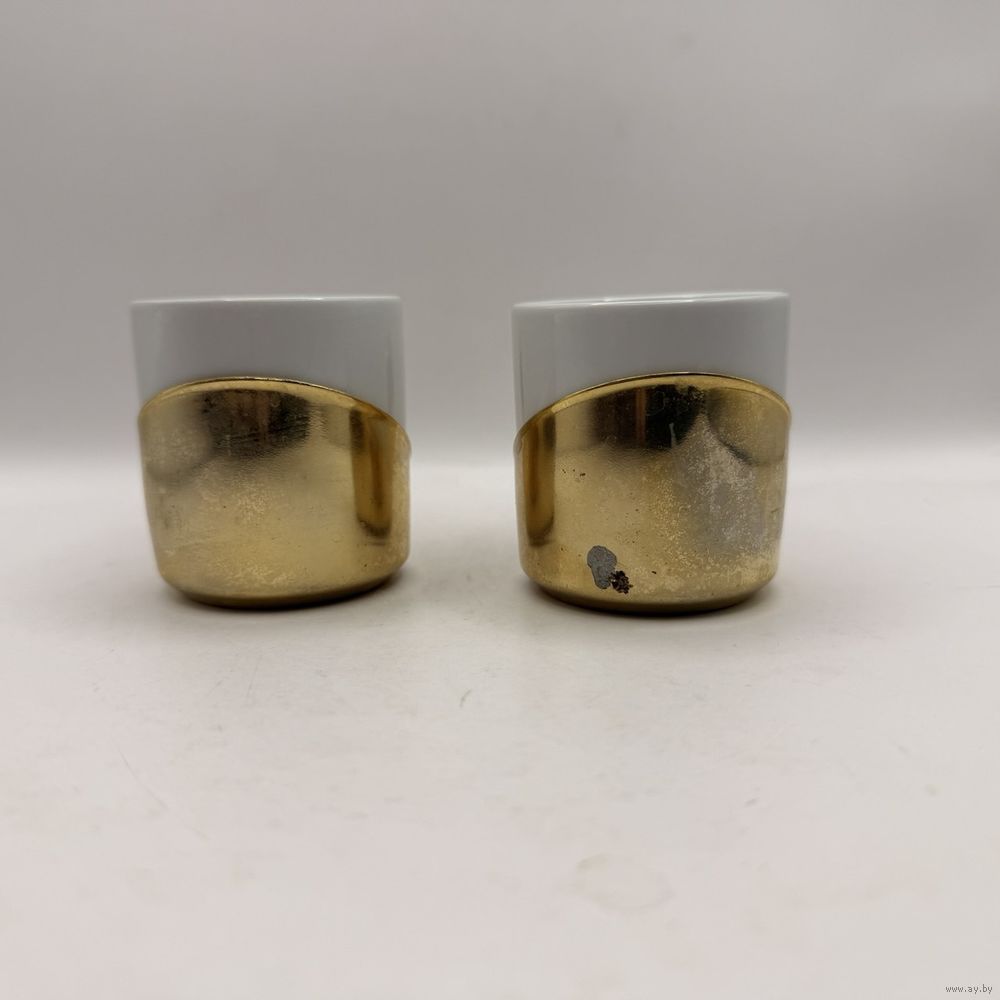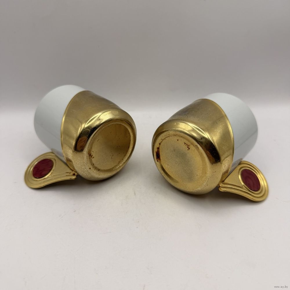 Винтажный кофейный сервиз на 2 персоны, в стиле Ар-деко. Фарфоровые чашки для эспрессо в латунных подстаканниках и металлическим подносом в комплекте. Подстаканники и поднос декорированы вставками из композитного материала. Италия. Высота чашки 6 см, объем 80 мл. Размер подноса 22 х 10 см. Следы бытования, следы коррозии внутри подстаканников и под ручками подноса, в целом не видны (см. фото, учтено в цене).