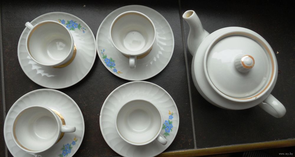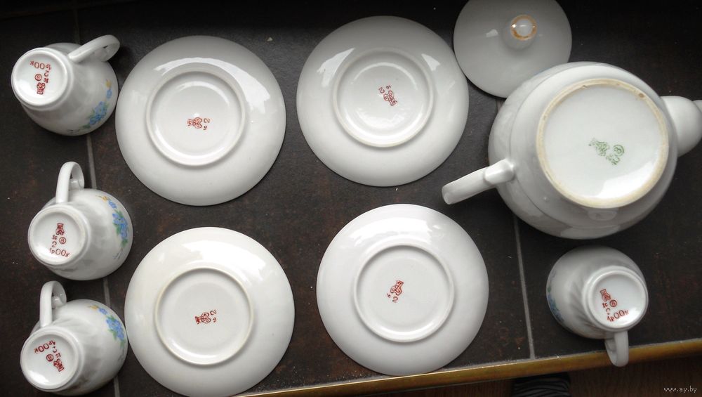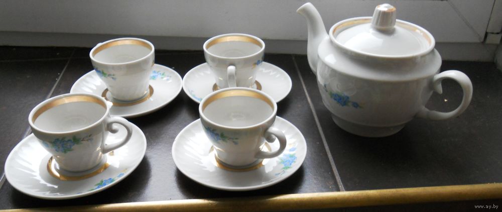 чашка ширина 6,5 см, высота 5 см. Блюдце 13 см. Кофейник 12 см высота. Чуть заметный скол на кофейнике. Забирать в центре, можно передать через турникет метро.