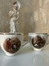 Два блюдца производства Richard Ginori. Фарфор. Италия. Две чашки и сахарница производства фабрики в Баварии. Фарфор. Диаметр блюдец – 12 см; Объем чашек -100 мл.