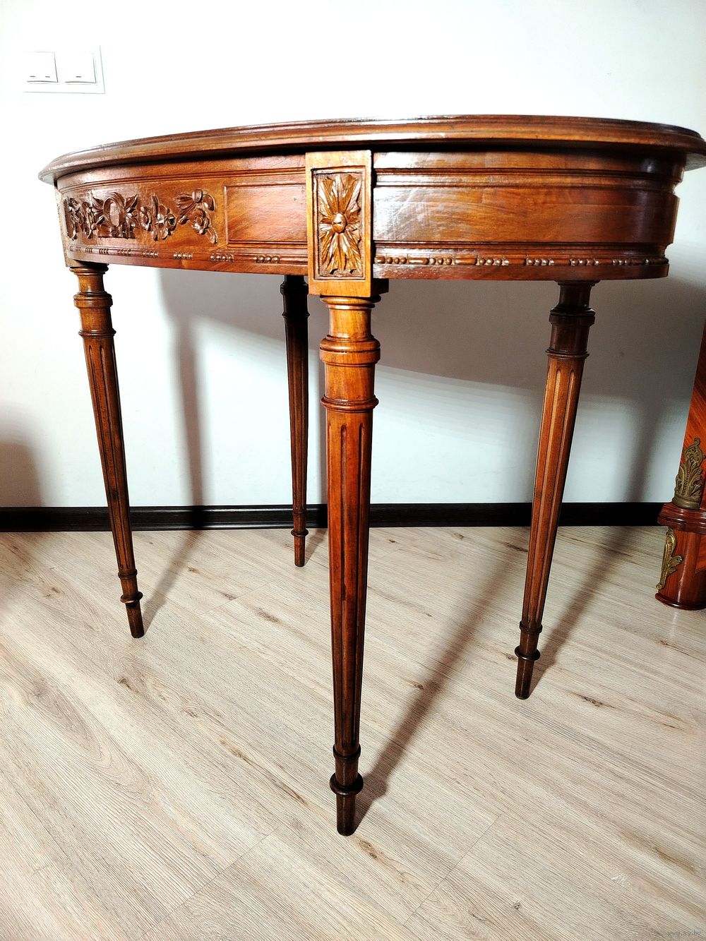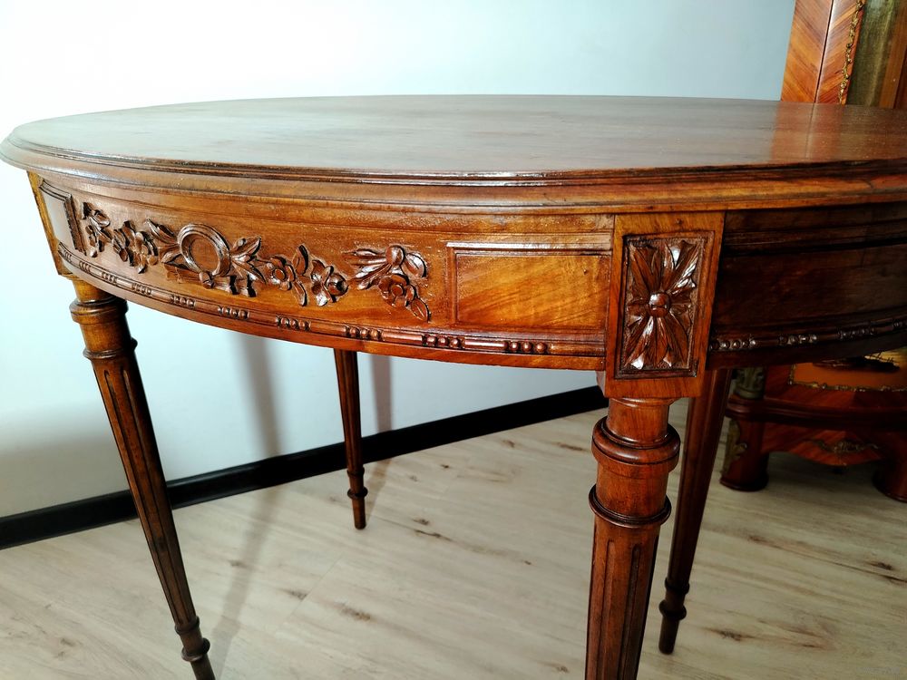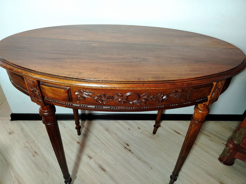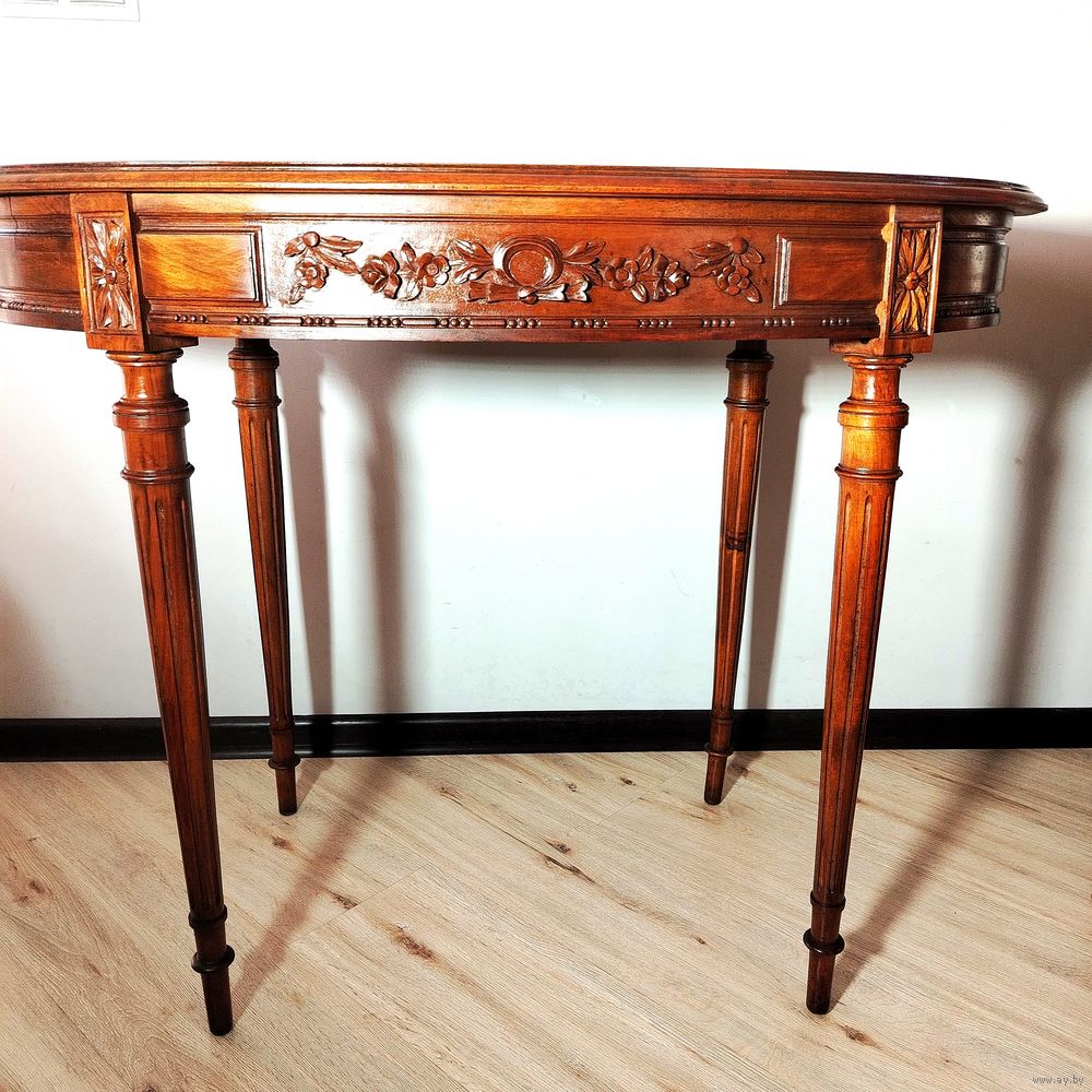 Старинный столик. Европа. Массив дерева (орех) с красивой резьбой ручной работы. Высота 74 см столешница 95 см на 57см.