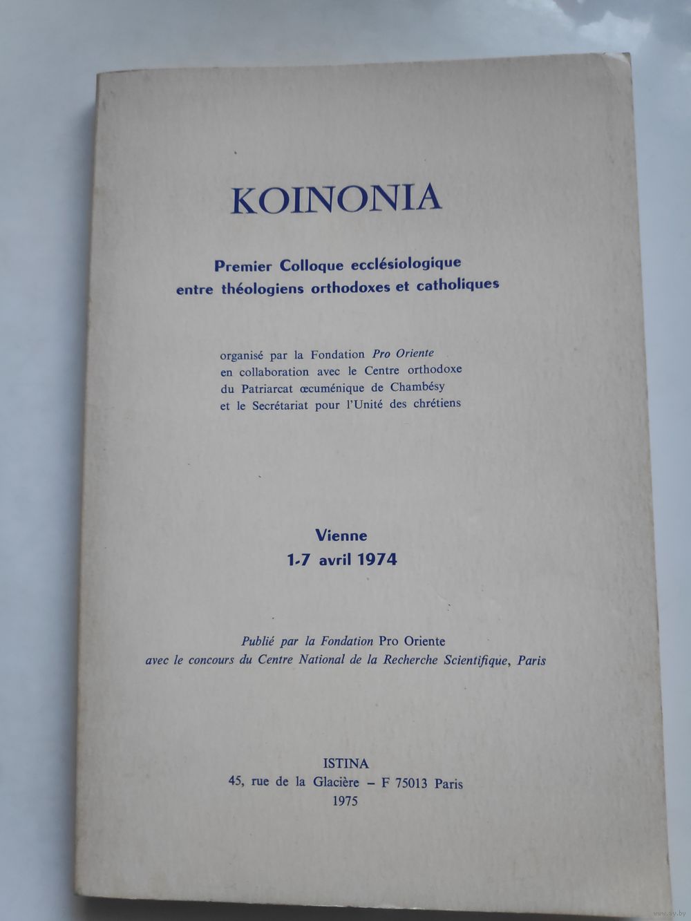 Koinonia : Premier Colloque ecclésiologique entre théologiens orthodoxes et catholiques", Vienna 1-7 avril, 1974 (Paris : Istina, 1975),