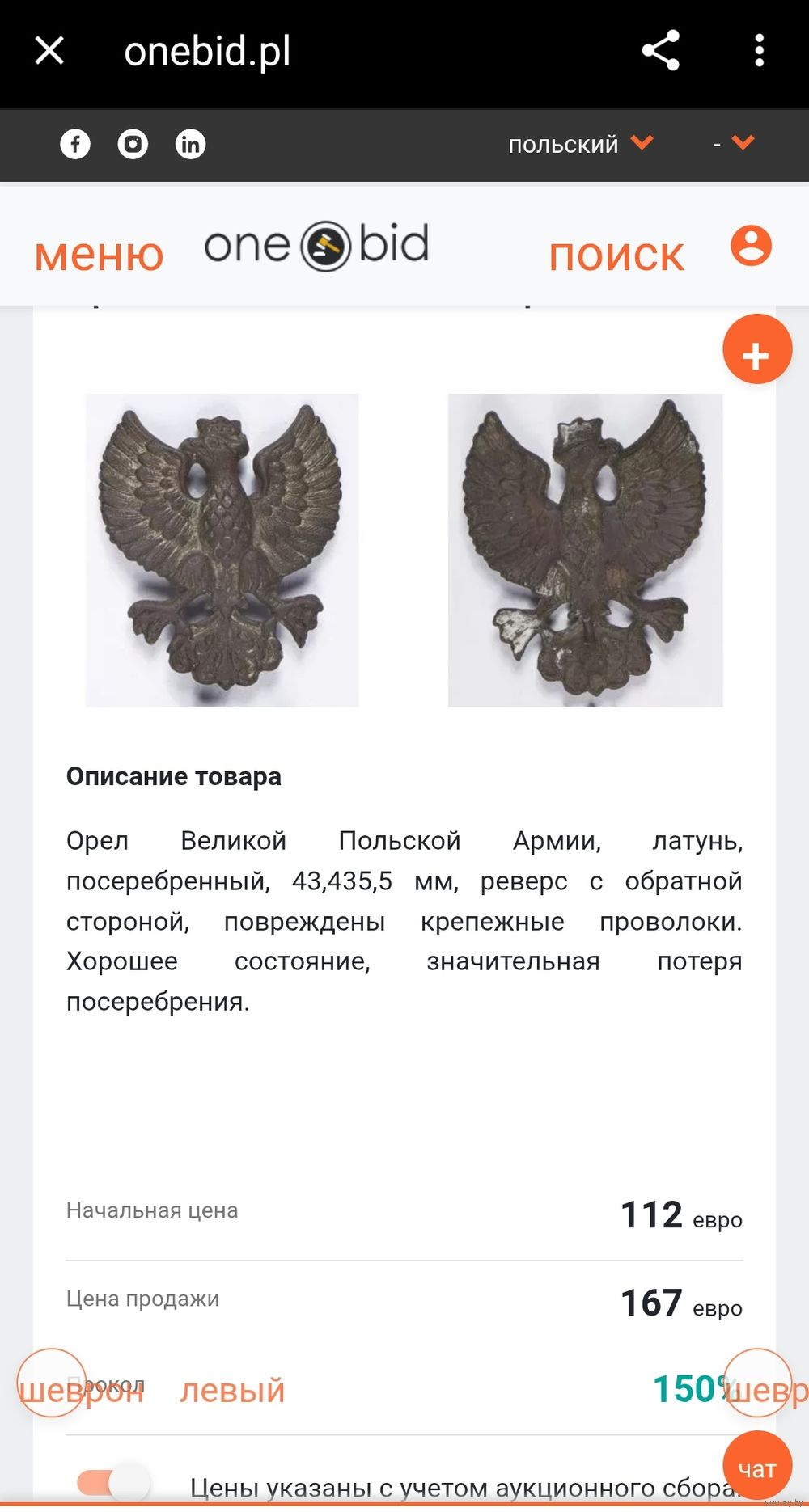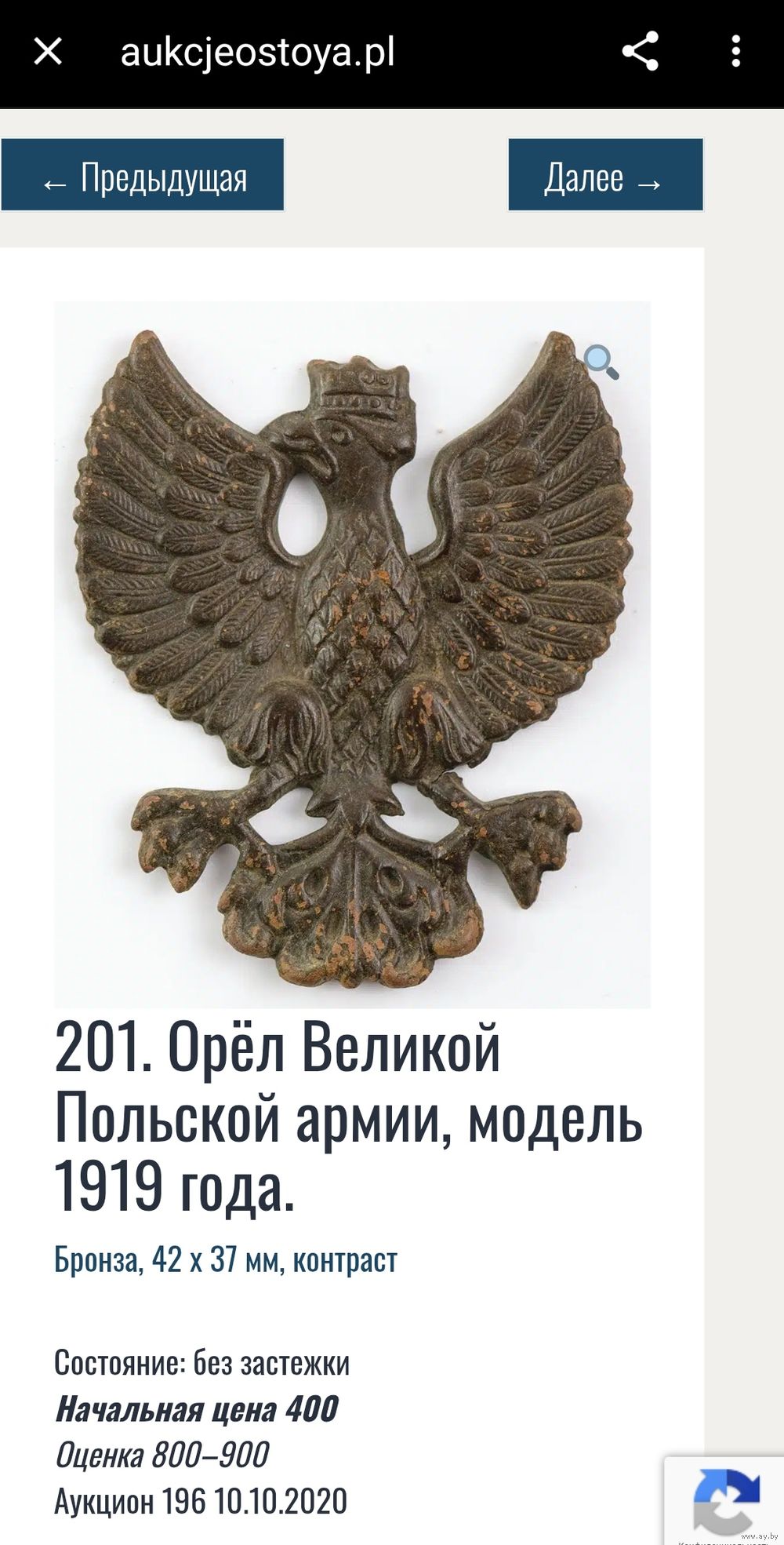 Вашему вниманию предлагается очень редкая кокарда Польши, образца 1919 года. Использовалась только в течение года, с 1919 по 1920 год. Исключительно коллекционный предмет.
