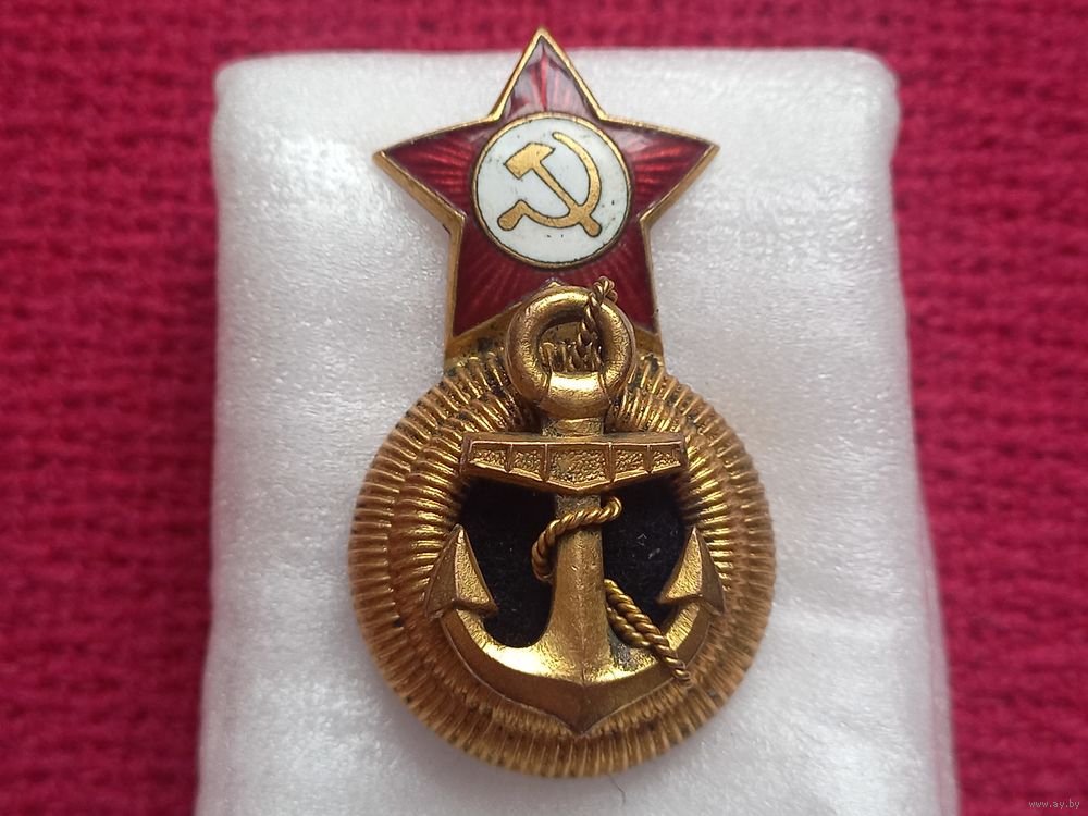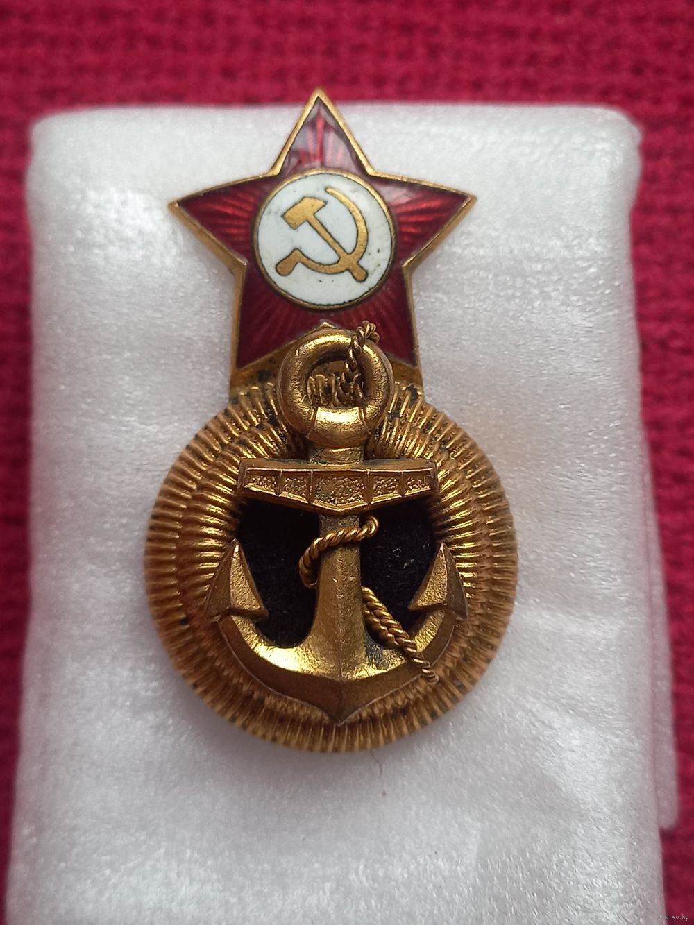Кокарда ВМФ морская СССР. Латунь, эмаль. Морской флот.