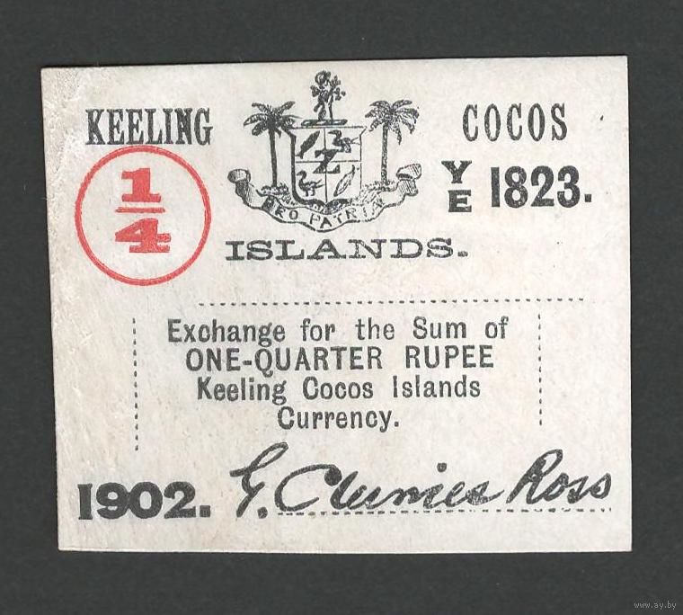 Кокосовы острова 1/4 рупии 1902 года. Тип PS-124. Состояние UNC-