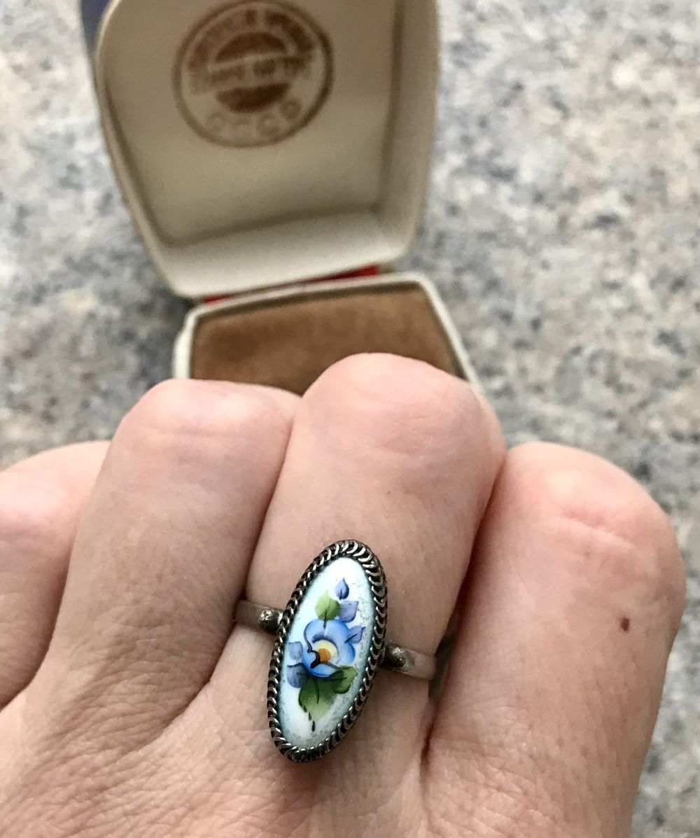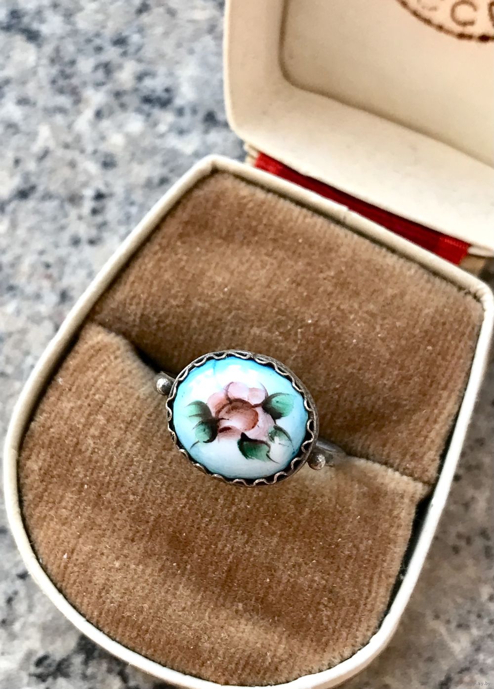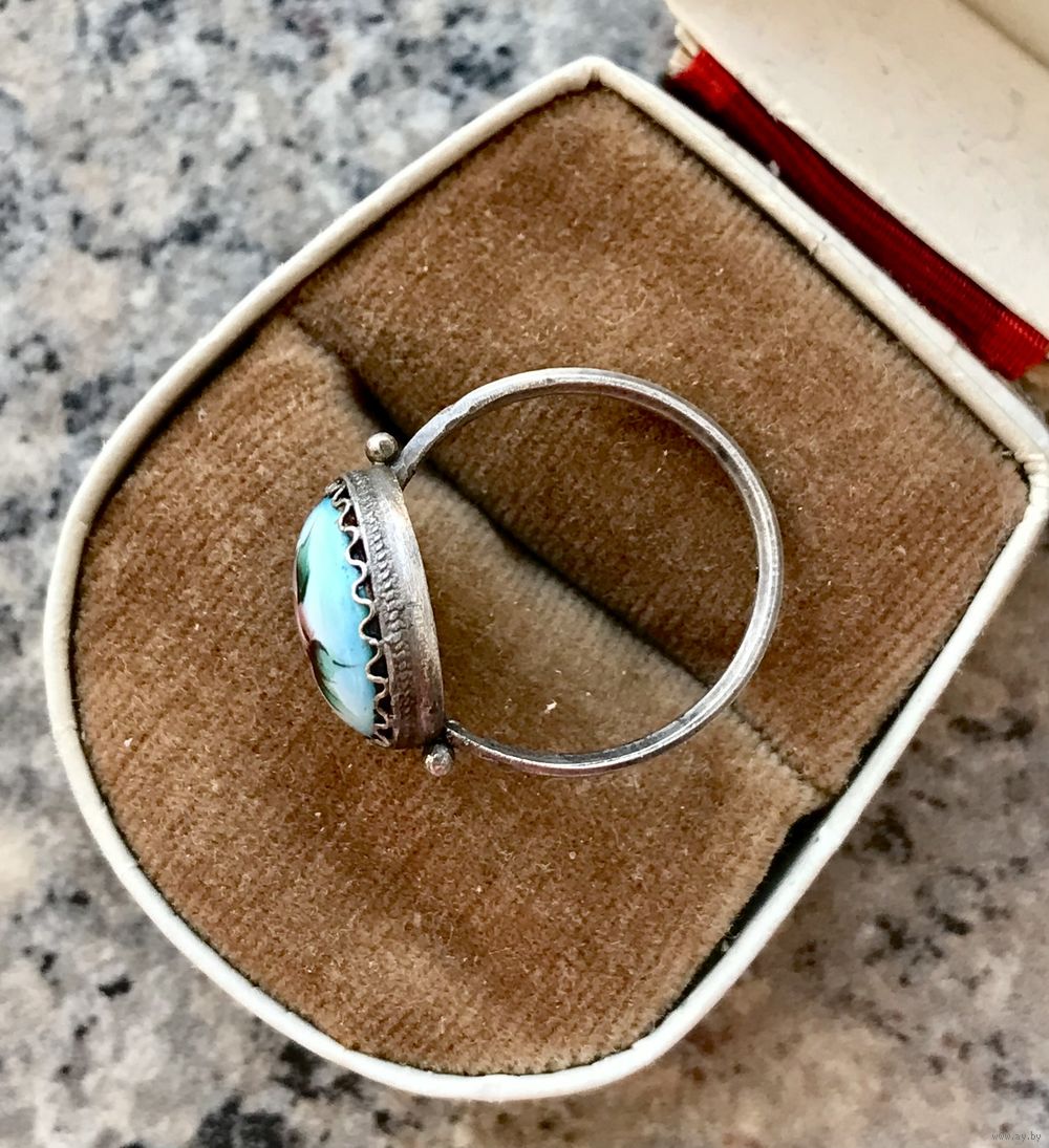 1.Винтажное колечко из мельхиора со вставкой финифти. Размер вставки 1,2х0,9см., размер кольца 16,5-17. Состояние хорошее.