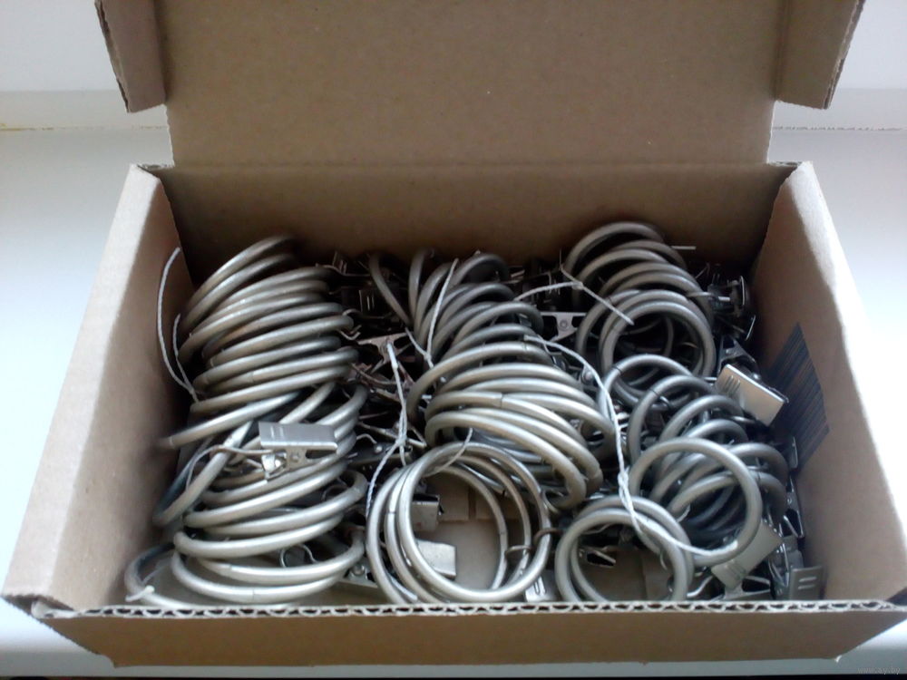 продам кольца для карниза, цвет сатин, внешний диаметр 42 мм. и 32 мм. (на 25 и 16 трубу), цена за 10 шт. 9 руб. в наличии есть много. кольца с прищепками, могу продать и с крючками, цена будет дешевле, а так же есть маленькие пластиковые кольца на 16 трубу, цена на них будет ещё дешевле!