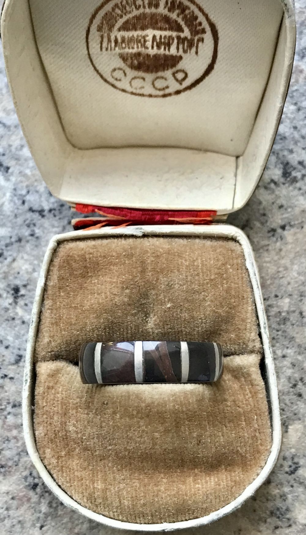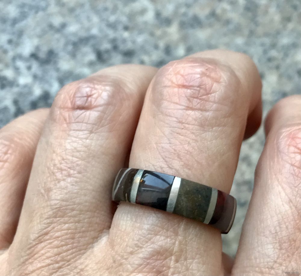 Винтажное кольцо из мельхиора и вставок из камня (яшма). Высота 0,5см., размер 17-17,5. Состояние хорошее.