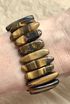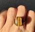 Кольцо с основой из металла с серебрением и вставкой из камня тигровый глаз. Диаметр вставки 1,5см., размер кольца 17-17,5. Состояние хорошее. В лотах есть подходящие серьги и браслет.