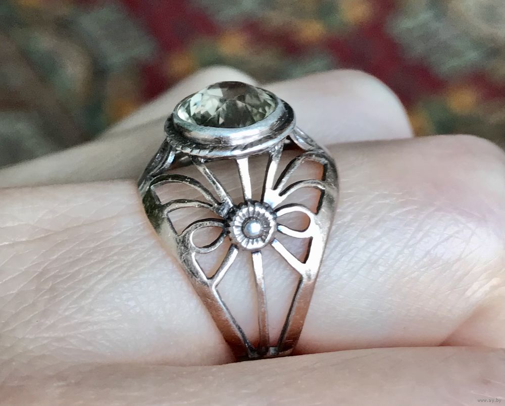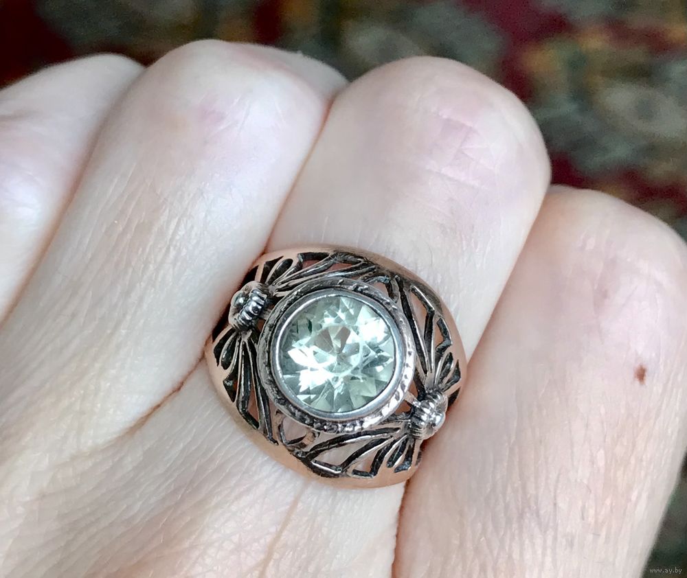 Крупное кольцо из серебра 875пр., изготовлено в 1976г. (именник 6ХЮ) Харьков. Вставка из кварца (имеются небольшие потёртости на гранях, с обратной стороны небольшой скол по центру, эти нюансы учтены в цене). Присутствует лёгкая позолота. Высота лицевой части кольца 1,5см., вставка 0,8см. Размер 17-17,5.