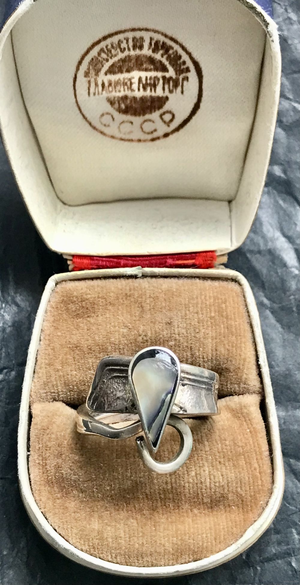 Крупное кольцо из металла с серебрением, на лицевой стороне вставка из гелиотиса. Высота кольца по центру 1,8см., размер регулируется. Состояние хорошее.