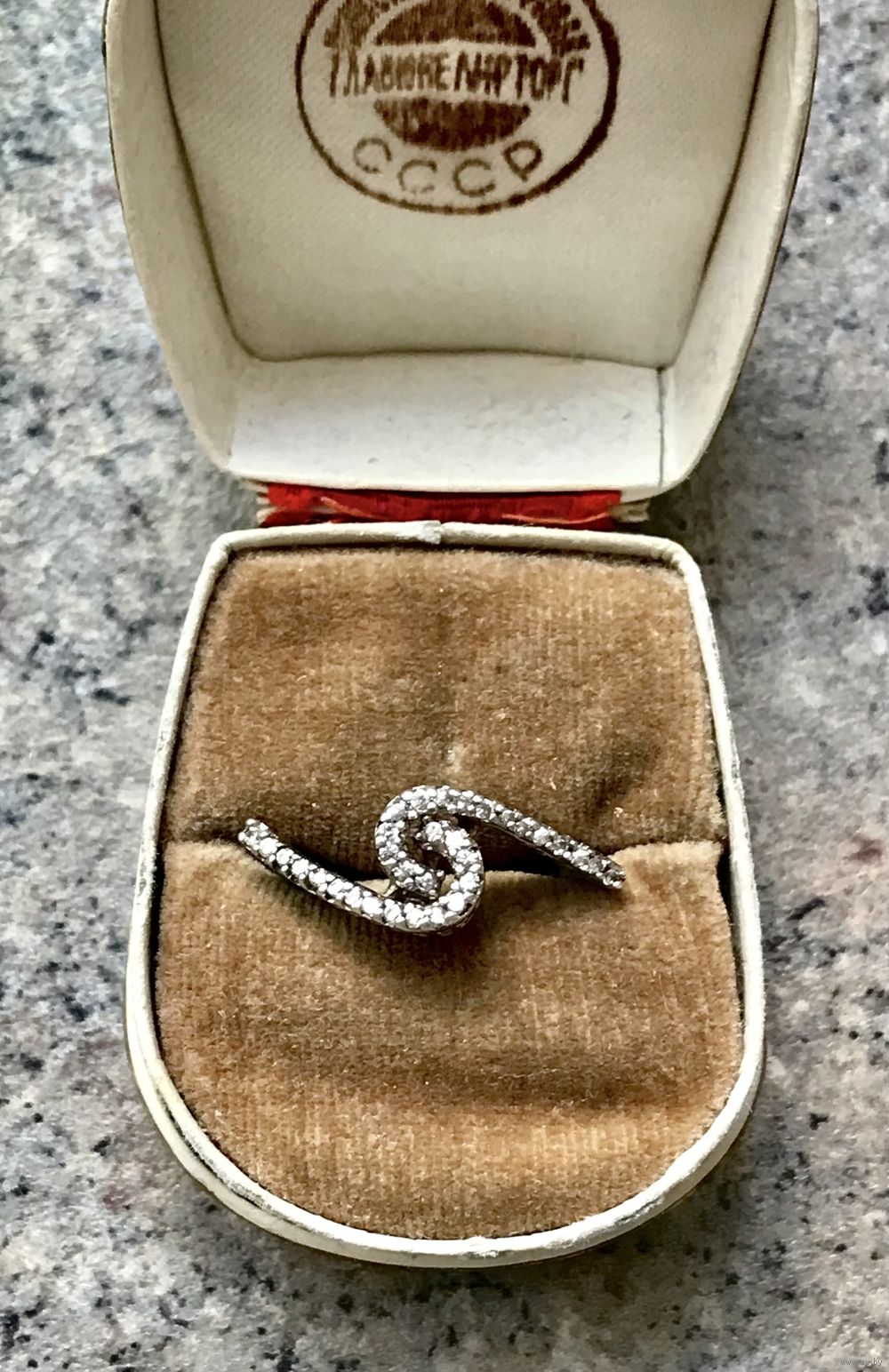 Кольцо из серебра (внутри на шинке стоит плохочитаемая отметка 925, металл доп.проверен в юв. мастерской) и кристаллов. Необычный дизайн. Размер кольца 16, вес 4,42гр.