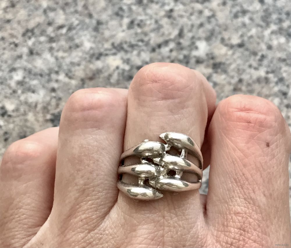 Кольцо из серебра 925пр.(внутри на шинке стоит отметка 925, также стоит российское пробирное клеймо). Высота каста 1,5см., размер кольца 18. Вес 5гр. Состояние хорошее.