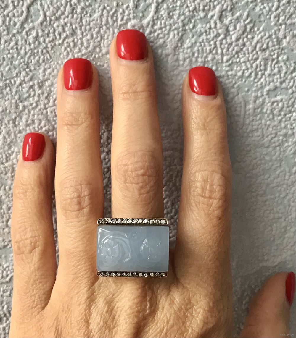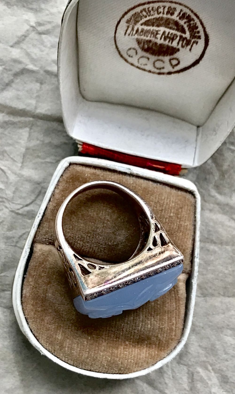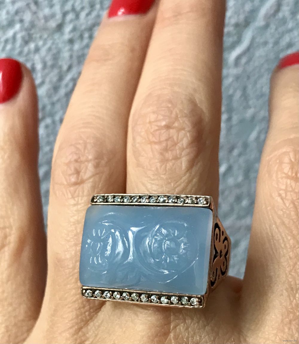 Крупное эффектное кольцо из серебра 925пр. с позолотой (на шинке стоит российское пробирное клеймо) и резной вставки скорее всего из халцедона и кристаллов. Размер каста 2,3х1,9см., размер вставки 2,3х1см. Размер кольца 18. Вес 16,5гр. Состояние хорошее.