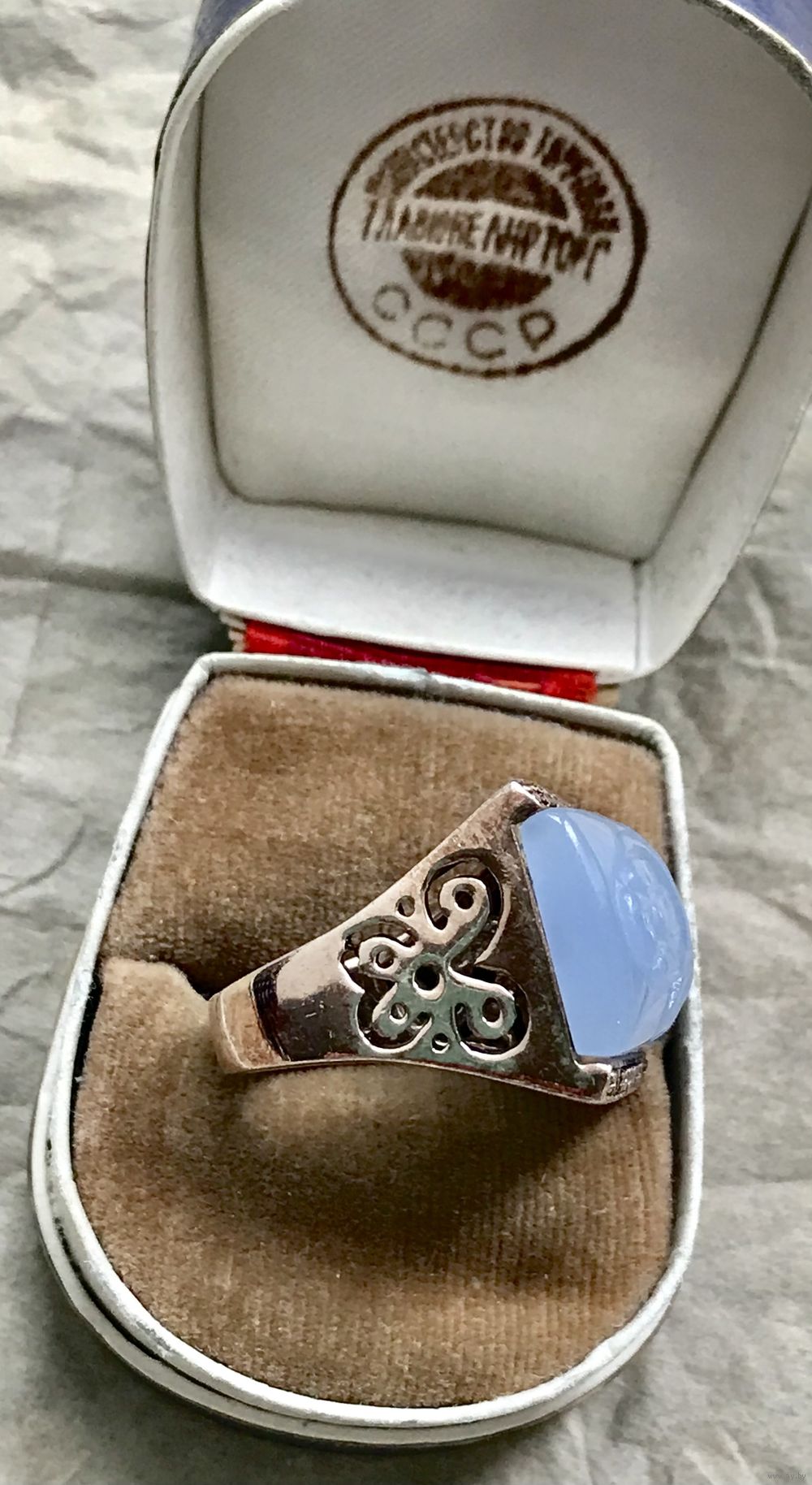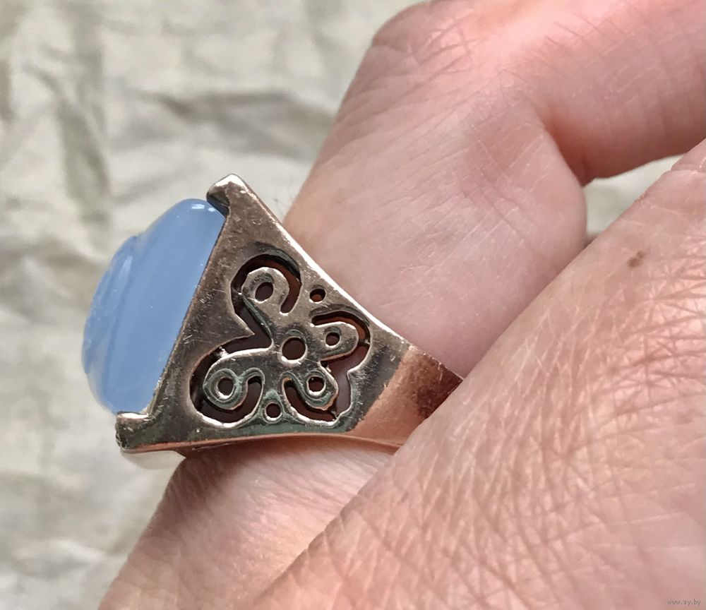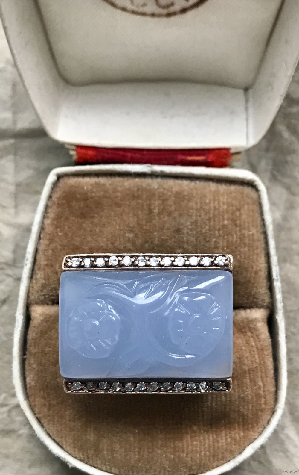 Крупное эффектное кольцо из серебра 925пр. с позолотой (на шинке стоит российское пробирное клеймо) и резной вставки скорее всего из халцедона и кристаллов. Размер каста 2,3х1,9см., размер вставки 2,3х1см. Размер кольца 18. Вес 16,5гр. Состояние хорошее.