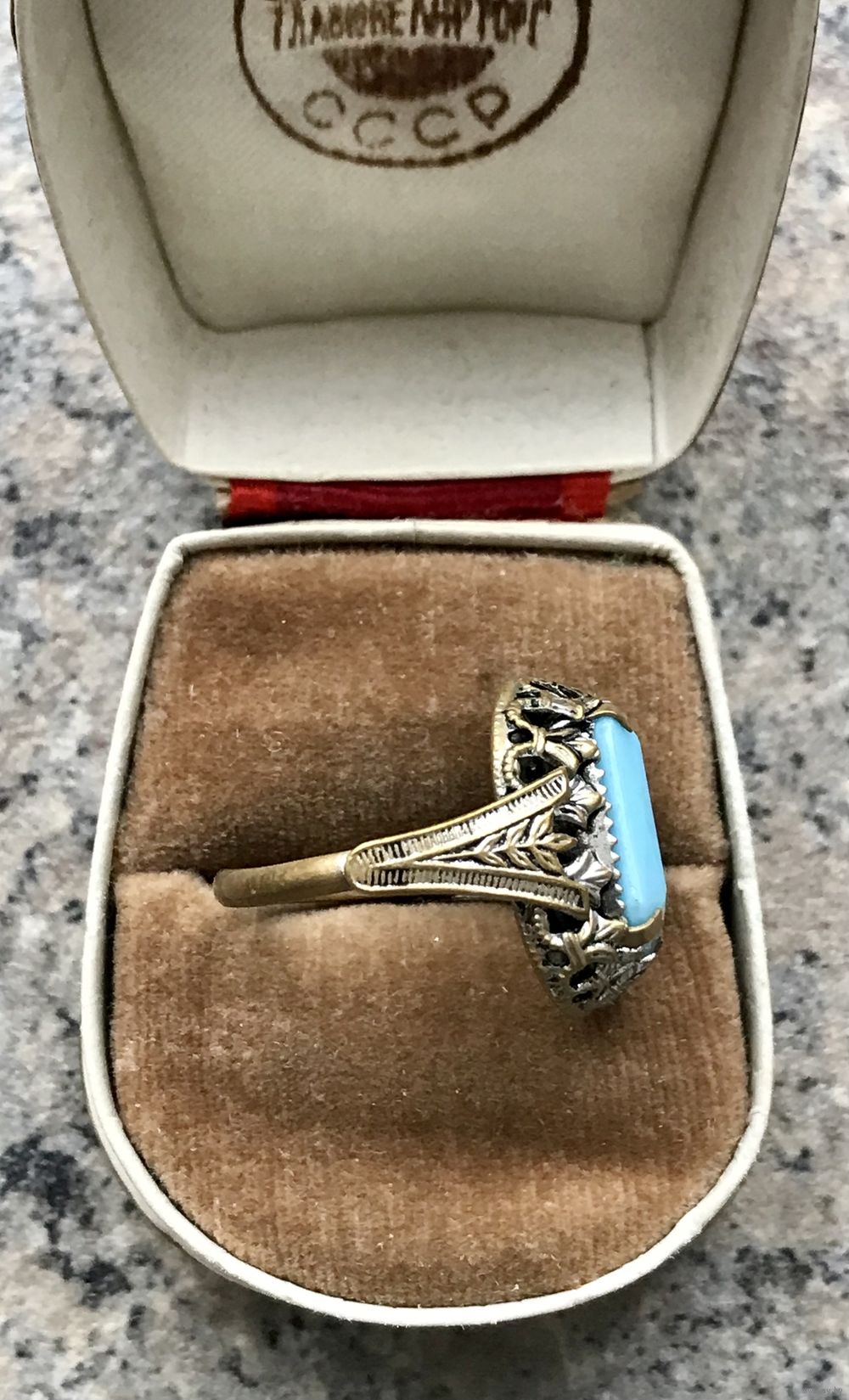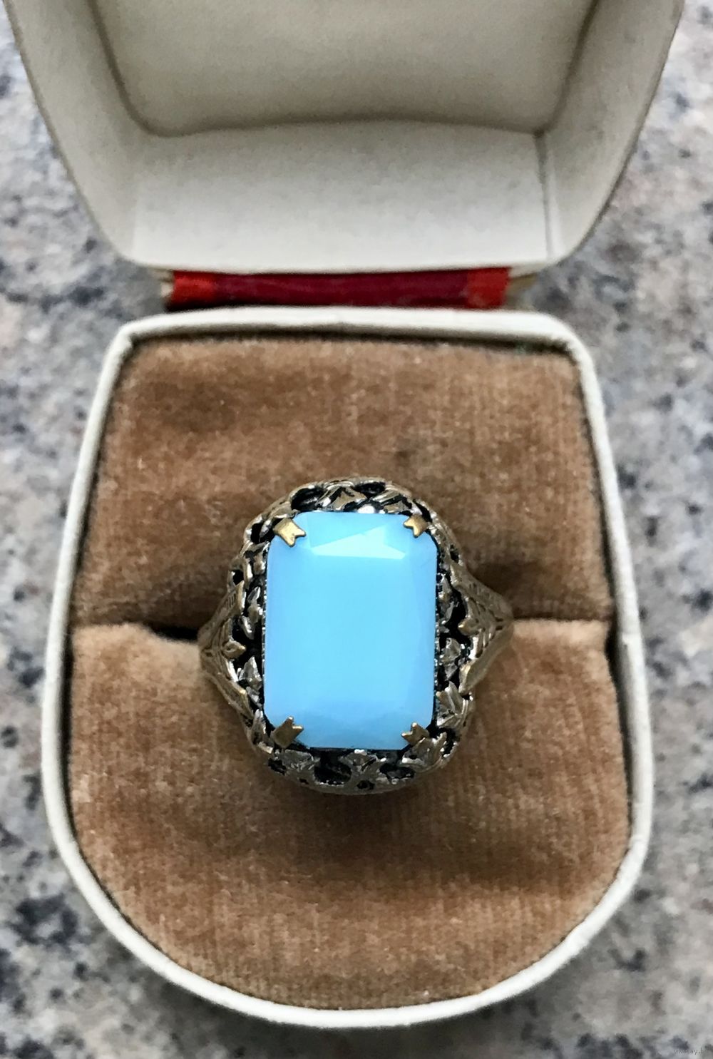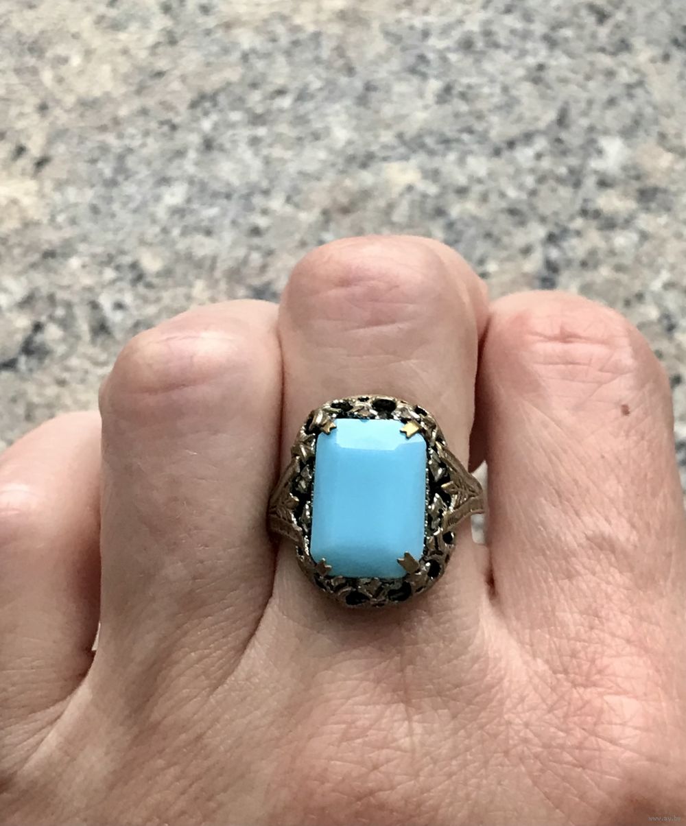 Винтажное чешское кольцо с основой из латуни и вставки из стекла. Высота каста 2см., размер вставки 1,4х1см. Размер 18. Состояние хорошее.